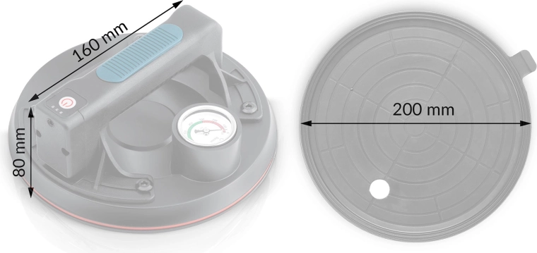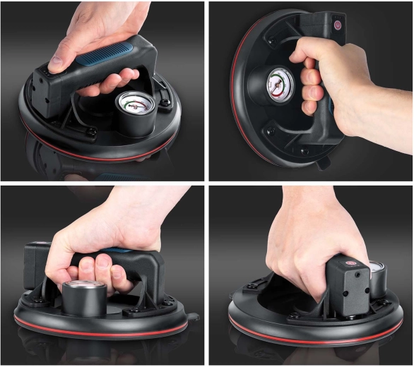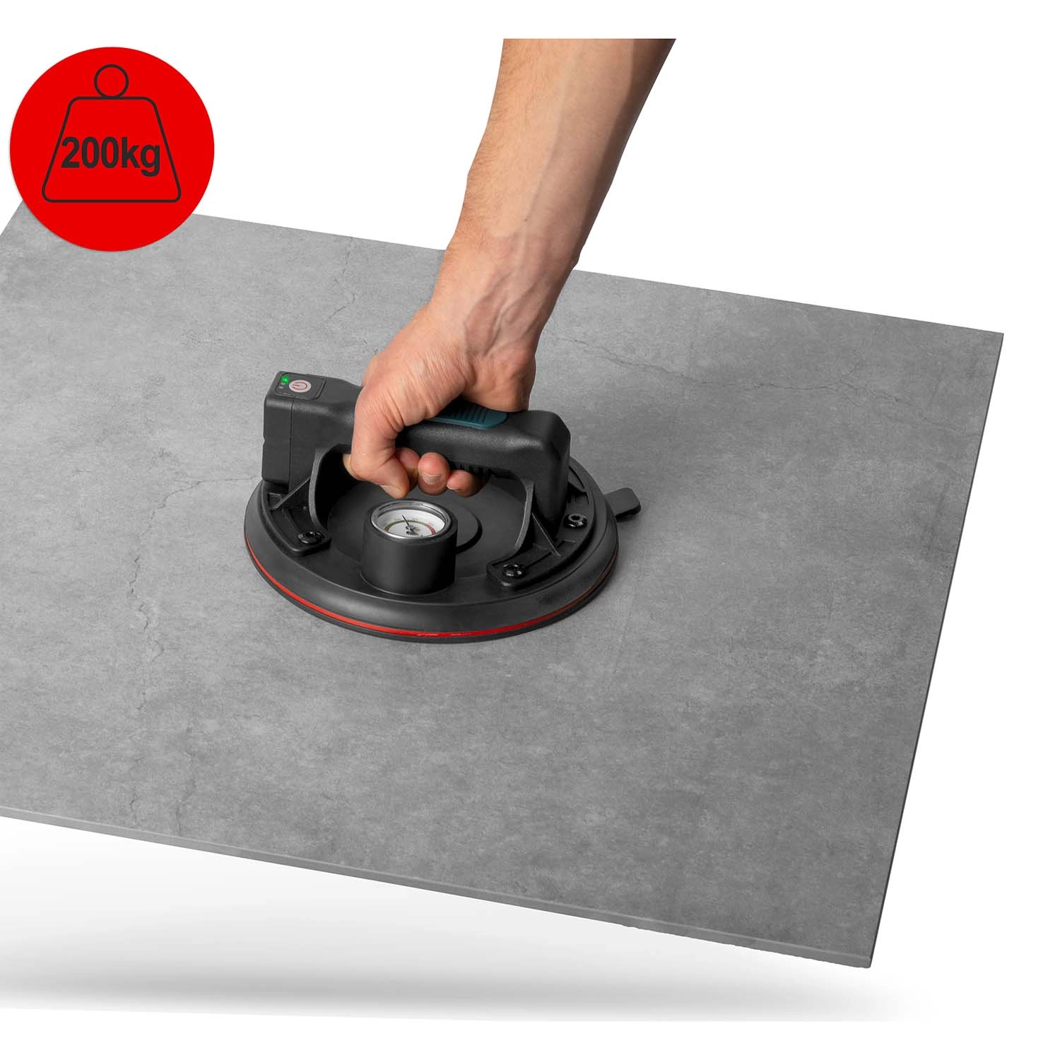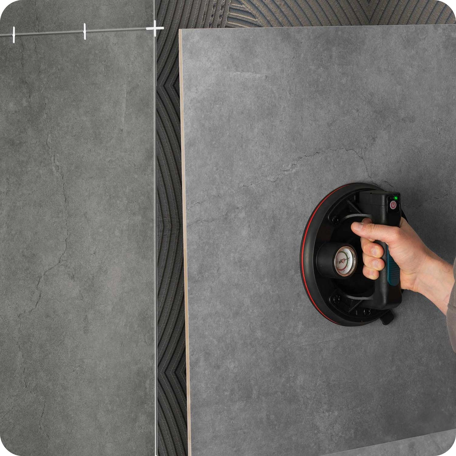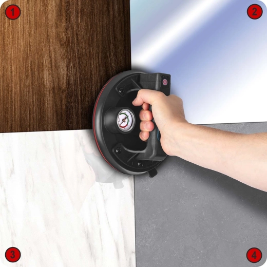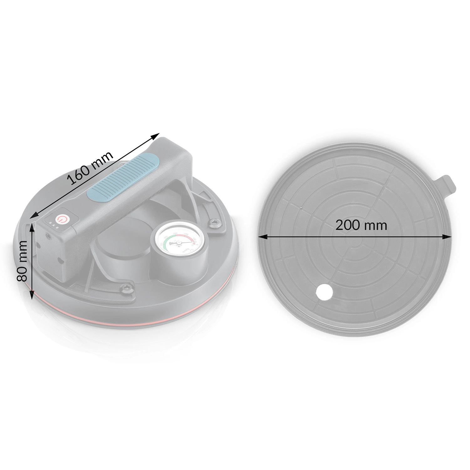 Táto kompaktná elektrická prísavka je navrhnutá pre rýchlu a bezpečnú manipuláciu s ťažkými panelmi, sklom, dlaždicami či lešteným kameňom. Trojitá gumená tesniaca manžeta zabezpečuje výbornú priľnavosť, tesnosť a tlmenie vibrácií, zatiaľ čo manometer s farebnou stupnicou poskytuje neustálu kontrolu nad úrovňou podtlaku (optimálne 300–760 mmHg). Ergonomická rukoväť s tvarovaným úchopom zvyšuje pohodlie aj pri dlhšej práci.