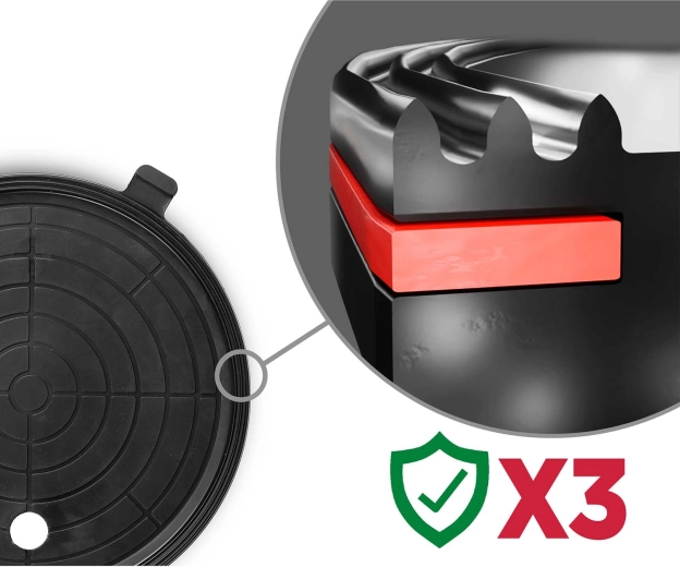 Veľký disk s priemerom 200 mm s trojitou gumenou manžetou zabezpečuje výnimočnú priľnavosť a tlmí vibrácie. Ideálne pre sklo, dlaždice, kameň aj brúsený betón.