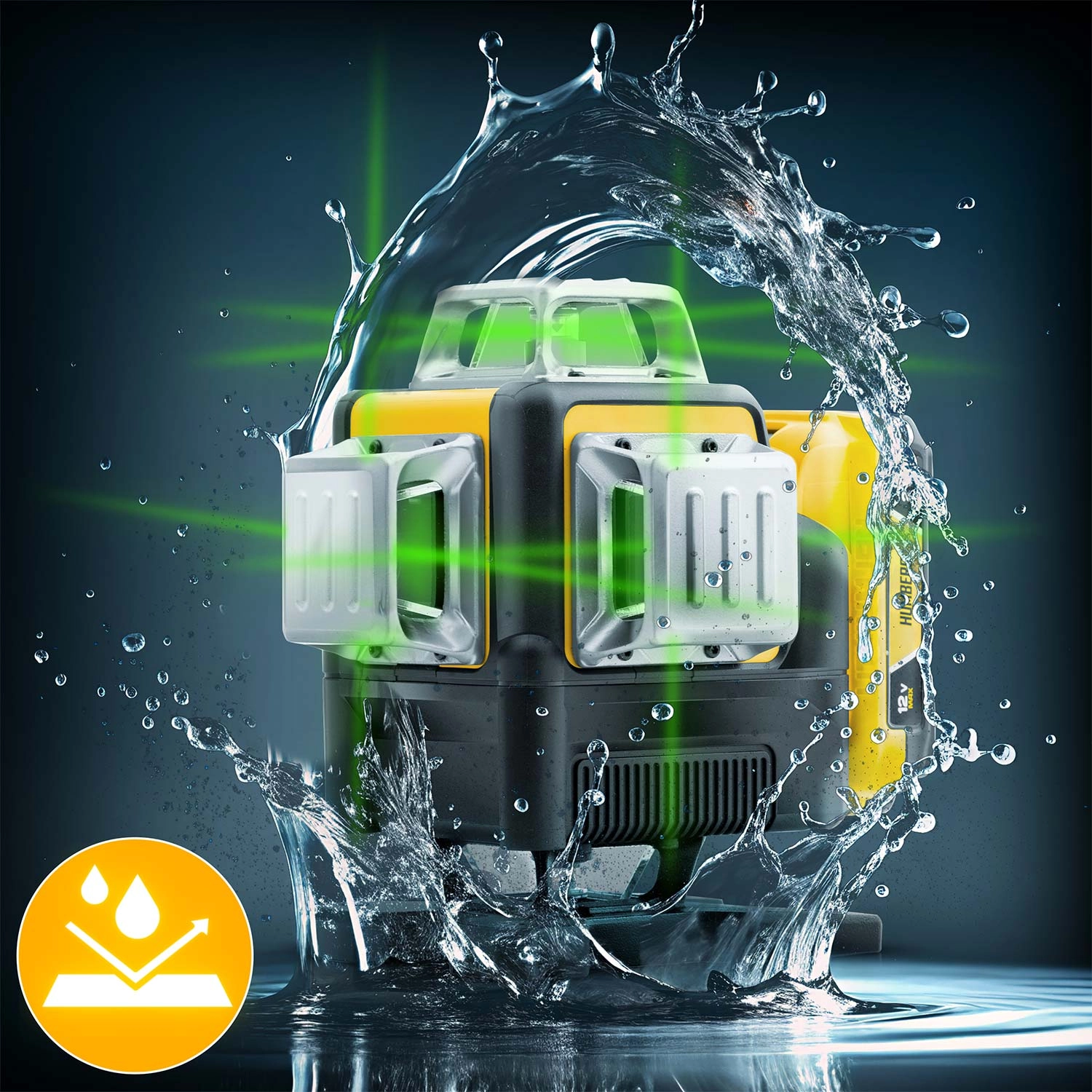 Jasný zelený laser 515 nm je lepšie viditeľný v interiéri aj na dennom svetle. 16 línií v 4 rovinách umožňuje presné vytýčenie horizontál a vertikál v celej miestnosti.
