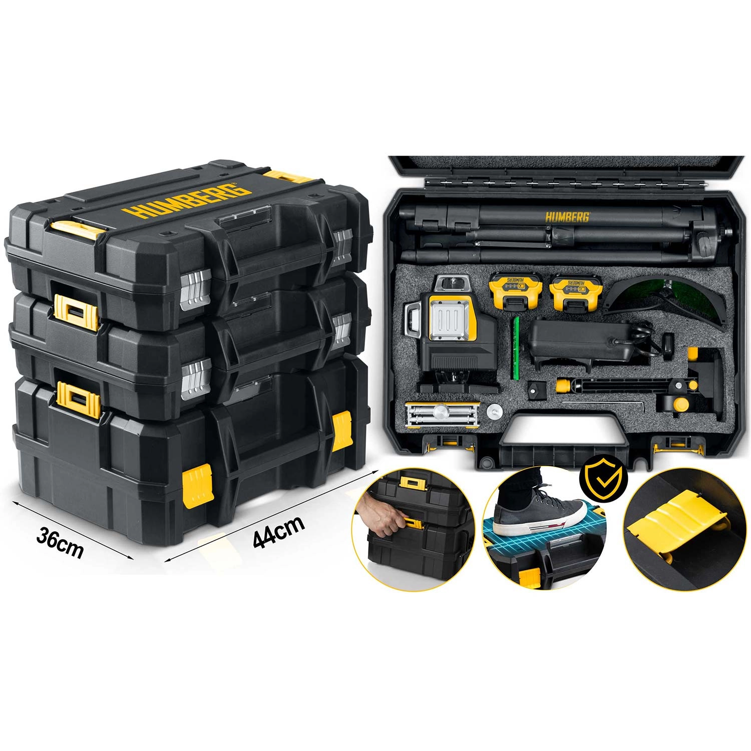 Křížový laser HUMBERG HM-171 v kufri so statívom, 4D 16 línií, zelený lúč