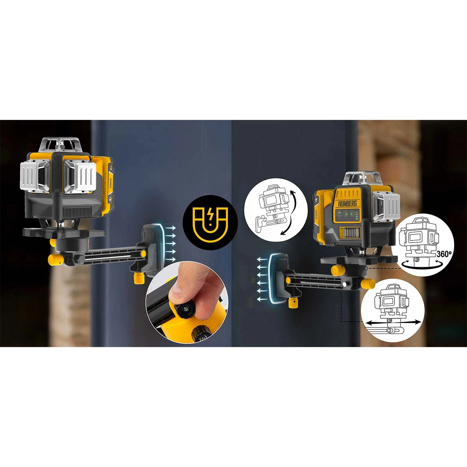 HUMBERG HM-171 je presná 4D laserová vodováha pre náročných profesionálov aj domácich majstrov. Zelený lúč (515 nm) je výrazne viditeľný aj na jasnom svetle a 16 línií umožní rýchle aj detailné zrovnanie horizontál aj vertikál v jednej miestnosti. Vďaka samourovnávaniu pracujete bez zdĺhavého nastavovania, a to s istotou perfektnej roviny.