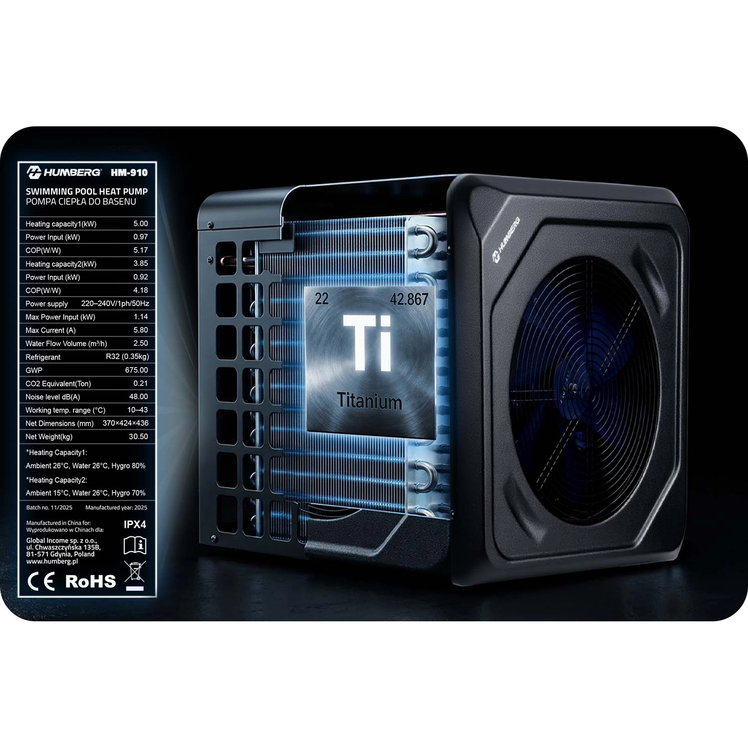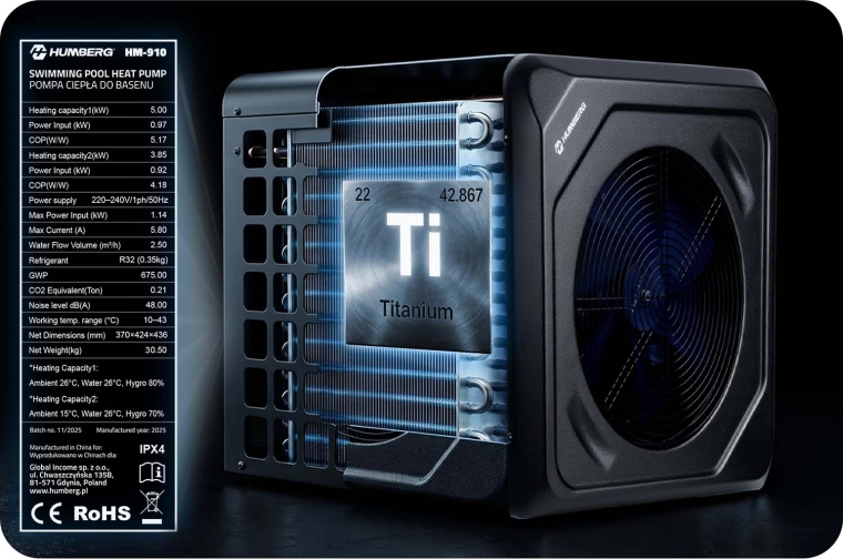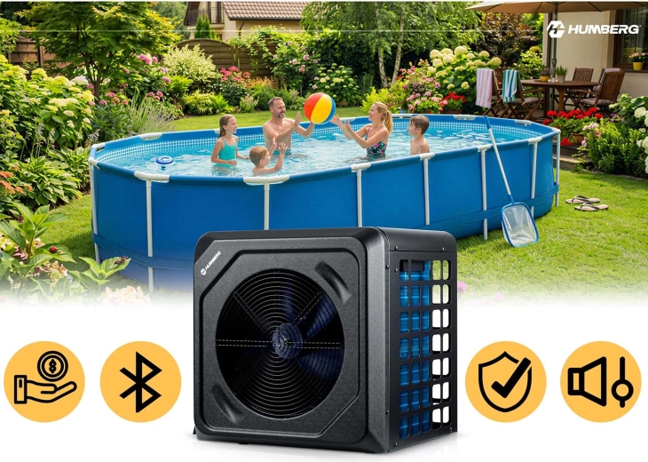 Tepelné čerpadlo HUMBERG HM-910 je efektívne a bezpečné riešenie na ohrev vody v záhradných bazénoch. Vďaka vykurovaciemu výkonu 5 kW a vysokej účinnosti COP 5,17 rýchlo dosiahnete príjemnú teplotu a zároveň udržíte nízke prevádzkové náklady. Zariadenie spoľahlivo pracuje v širokom rozsahu okolitých teplôt 10–43 °C a s hlučnosťou iba 48 dB neruší oddych na záhrade.