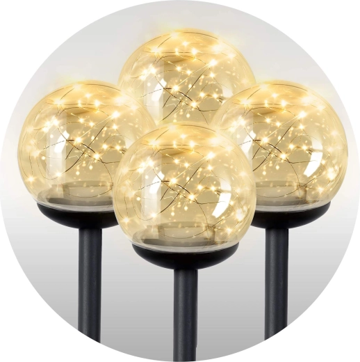 Vytvorte si čarovnú atmosféru v záhrade so súpravou štyroch solárnych svetiel v tvare gule. Vďaka amorfným panelom fungujú aj pri slabom svetle, majú praktické súmrakové čidlo, automatické zapínanie v noci a vodoodolnosť IPX4. Jednoduchý hrot umožní ľahké zapichnutie do pôdy a univerzálny dizajn skvele doplní záhony, trávniky aj cesty.