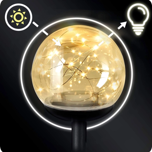 Solárne záhradné lampy ILUMEN premenia váš vonkajší priestor na príjemne osvetlenú oázu. Priehľadné gule s jemnými LED bodmi rovnomerne rozptyľujú teplé svetlo a bezpečne zvýraznia chodníčky, vstupy aj záhony. Vďaka amorfným solárnym panelom spoľahlivo dobíjajú aj pri horšom osvetlení a integrovaný akumulátor 150 mAh Ni-MH poskytuje energiu na večerné svietenie.