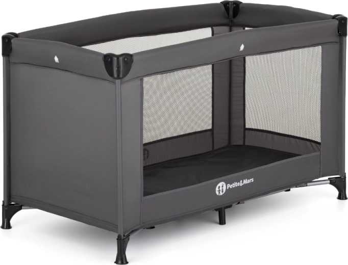 Ľahká a kompaktná cestovná postieľka PETITE&MARS Koot Lite v elegantnej tmavosivej farbe je ideálna na cesty aj domov. Ponúka stabilnú kovovú konštrukciu, priedušné sieťované bočnice pre lepšiu cirkuláciu vzduchu a bezpečnostný systém Double Lock proti samovoľnému zloženiu. Ľahko sa skladá, zmestí sa do prenášacej tašky a je vhodná pre deti do 15 kg.