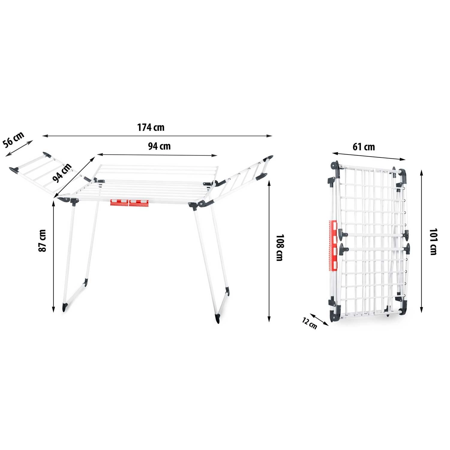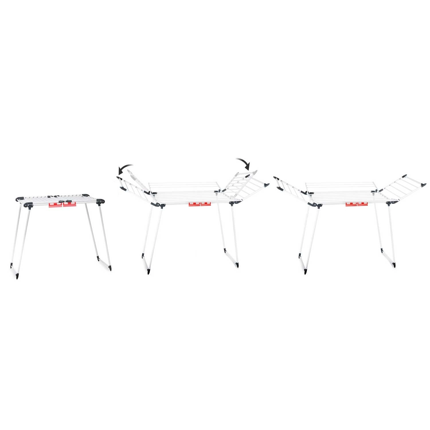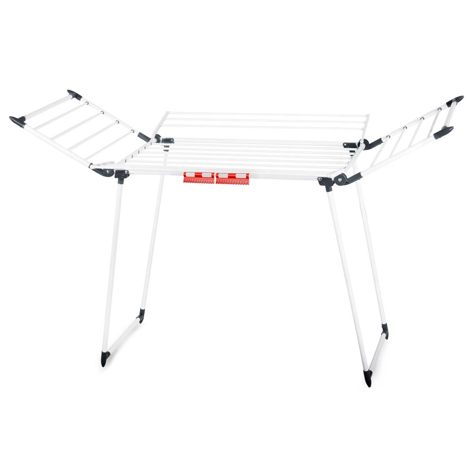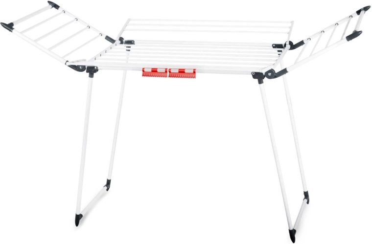 4 rozkladacie krídla rozšíria sušiacu plochu presne vtedy, keď ju potrebujete, zatiaľ čo špeciálne úchyty na spodnú aj drobnú bielizeň šetria miesto na hlavných priečkach. Silné tyče navyše pomáhajú obmedziť krčenie, takže oblečenie často netreba ani žehliť.