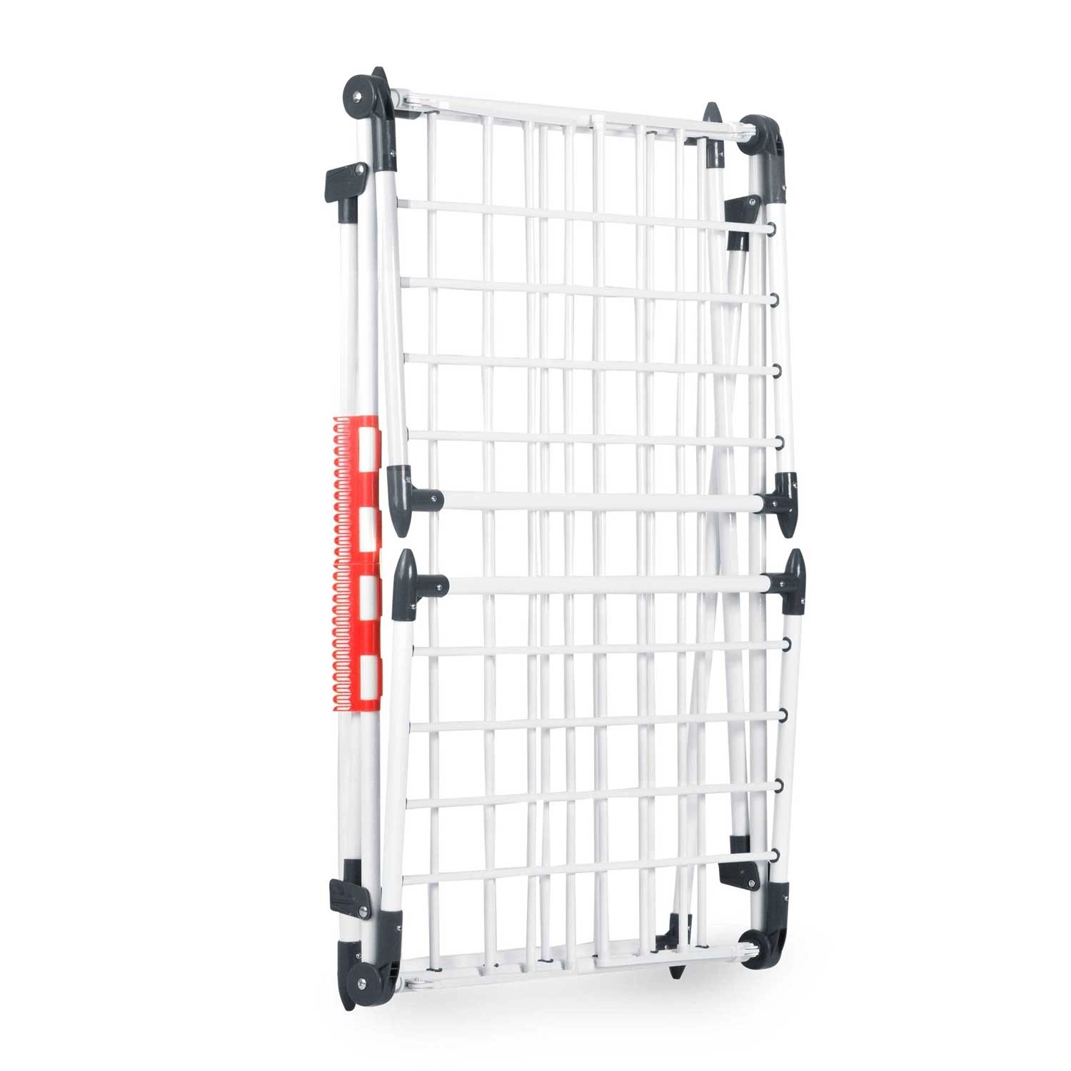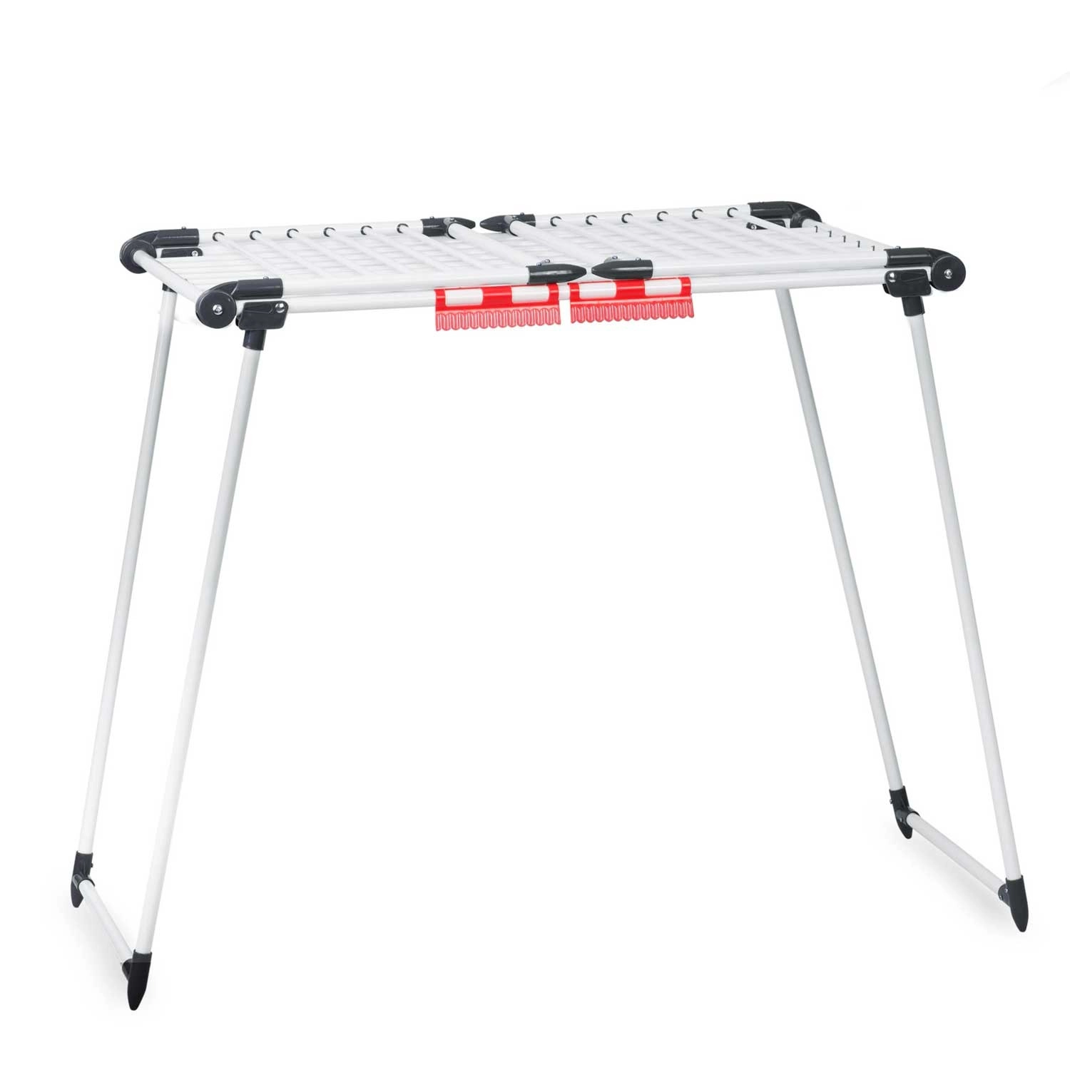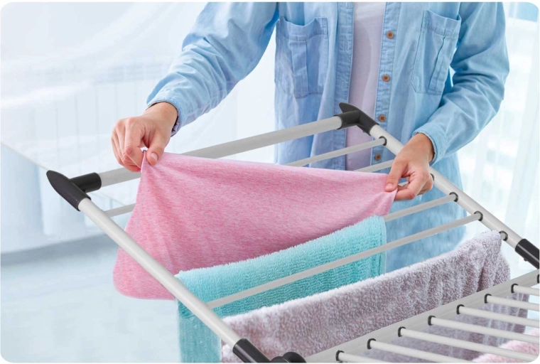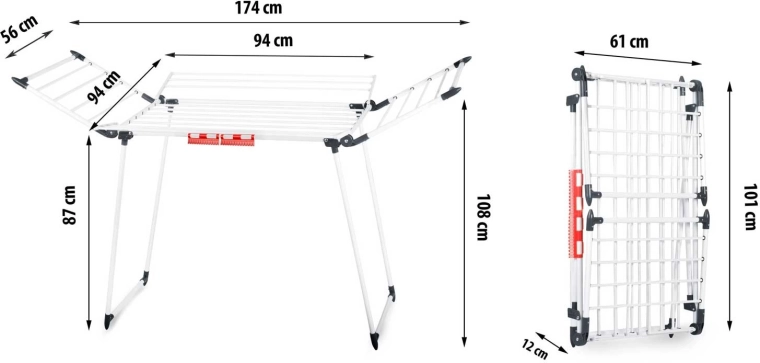 4 rozkladacie krídla rozšíria sušiacu plochu presne vtedy, keď ju potrebujete, zatiaľ čo špeciálne úchyty na spodnú aj drobnú bielizeň šetria miesto na hlavných priečkach. Silné tyče navyše pomáhajú obmedziť krčenie, takže oblečenie často netreba ani žehliť.