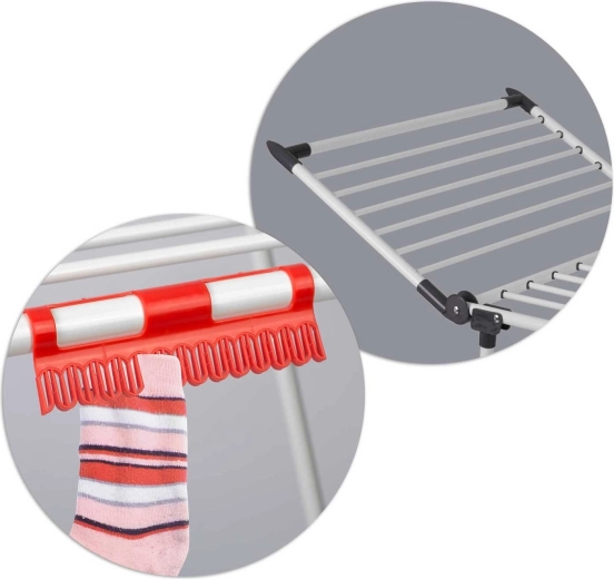 Praktické klipy šetria miesto a hrubšie tyče obmedzujú vznik záhybov – bielizeň po usušení často netreba žehliť.
