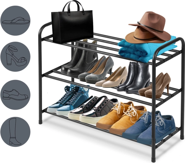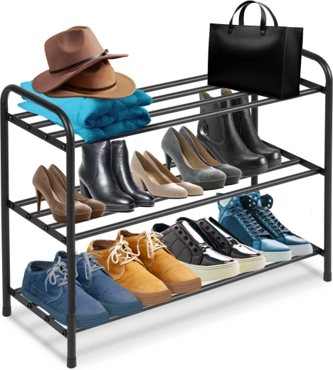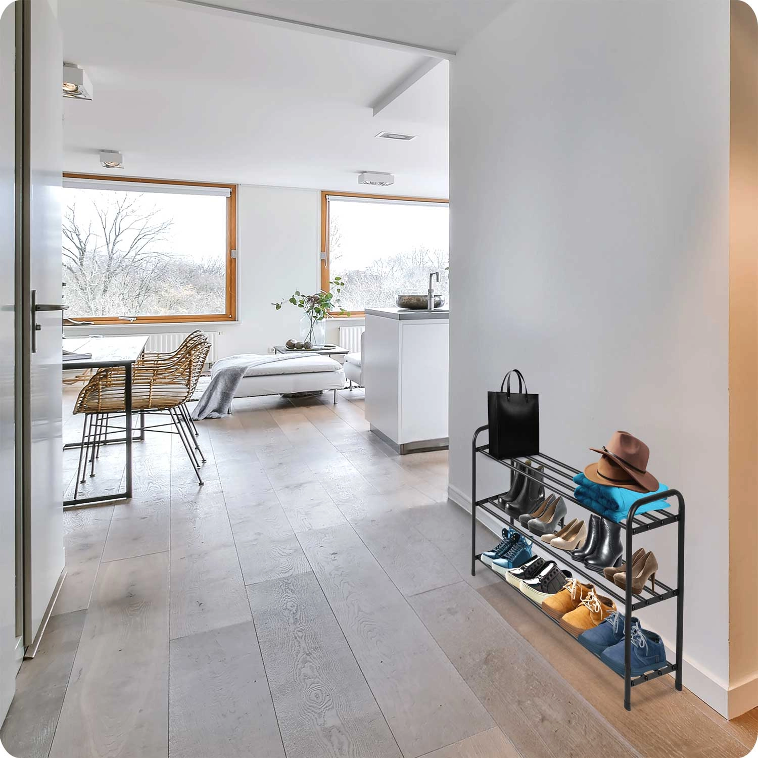 Tri priestranné úrovne pojmú obuv pre celú rodinu a udržia ju prehľadne nad zemou a bez neporiadku.