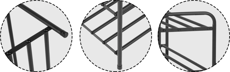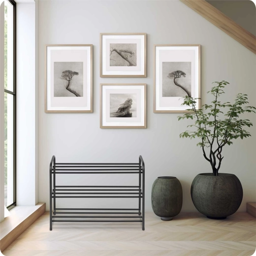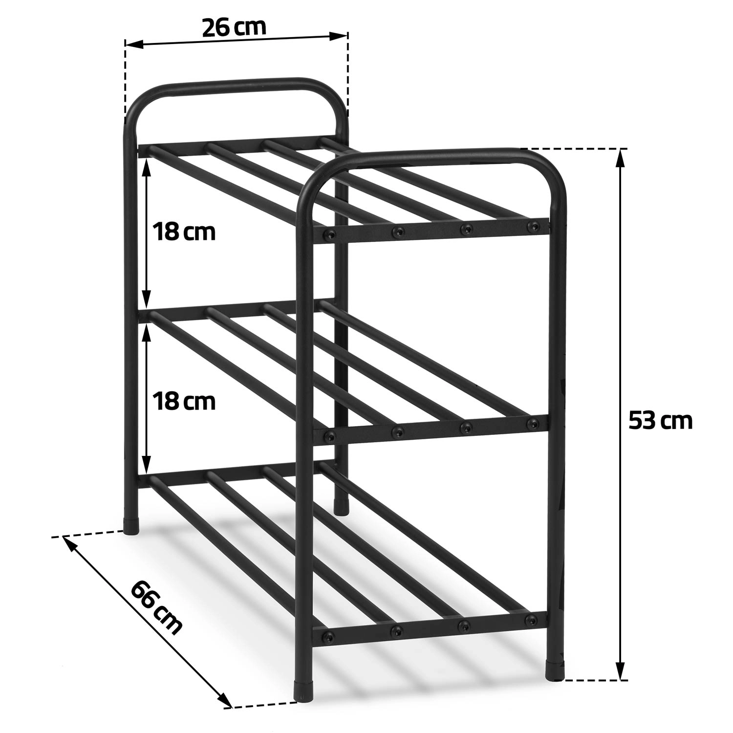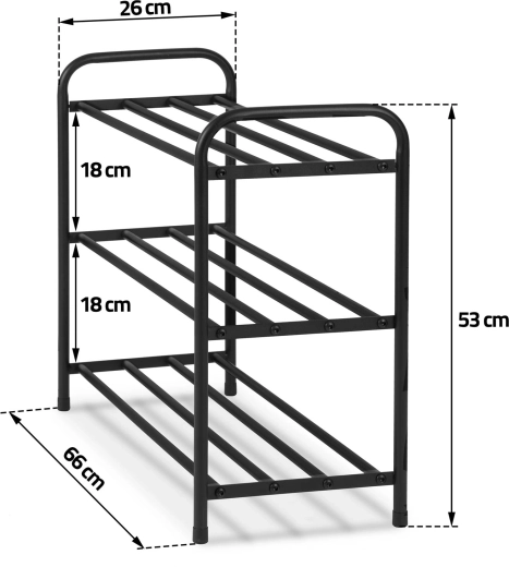 Trojúrovňový botník Massido pomôže udržať vašu obuv prehľadne usporiadanú a vždy po ruke. Stabilný kovový rám a otvorené rošty umožňujú lepšie prúdenie vzduchu, takže topánky zostávajú suché, bez zápachu a nedeformujú sa.