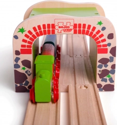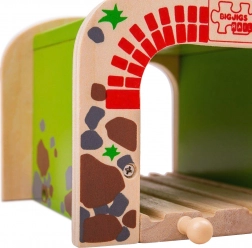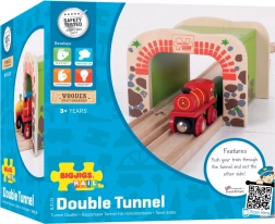 Drevený dvojitý tunel BIGJIGS RAIL prináša do sveta drevených vláčikodráh viac akcie a plynulejšiu prevádzku. Vďaka dvojkoľajnému prejazdu môžu naraz prechádzať dva vláčiky, čo podporuje spoločnú hru a rozvoj koordinácie. Pevná konštrukcia a atraktívny motív tehál a kameňa dodajú trati realistický vzhľad.