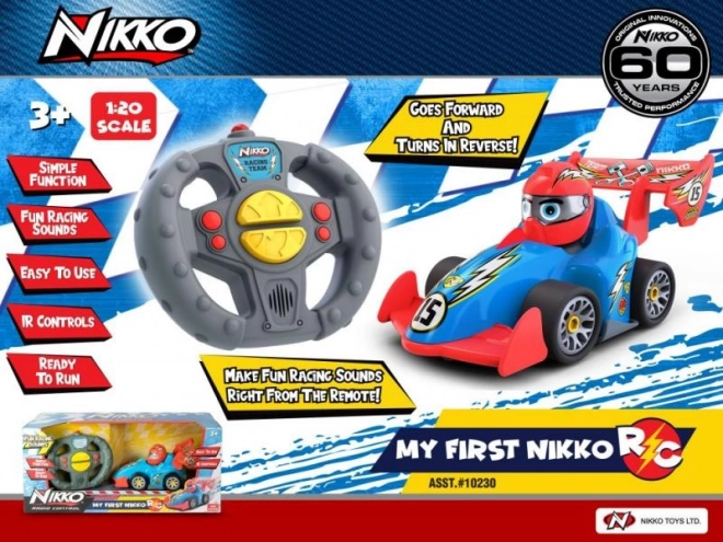 Zoznámte najmenších pretekárov s ich prvým diaľkovo ovládaným autíčkom My First Nikko. Jednoduchý ovládač umožní hneď vyraziť na trať, otáčať sa vzad a prehrávať zábavné pretekárske a pípajúce zvuky. Mäkké hrany a kvalitné spracovanie zabezpečujú bezpečnú hru, batérie sú súčasťou balenia a hračka je vhodná už od 2 rokov.