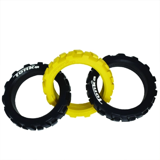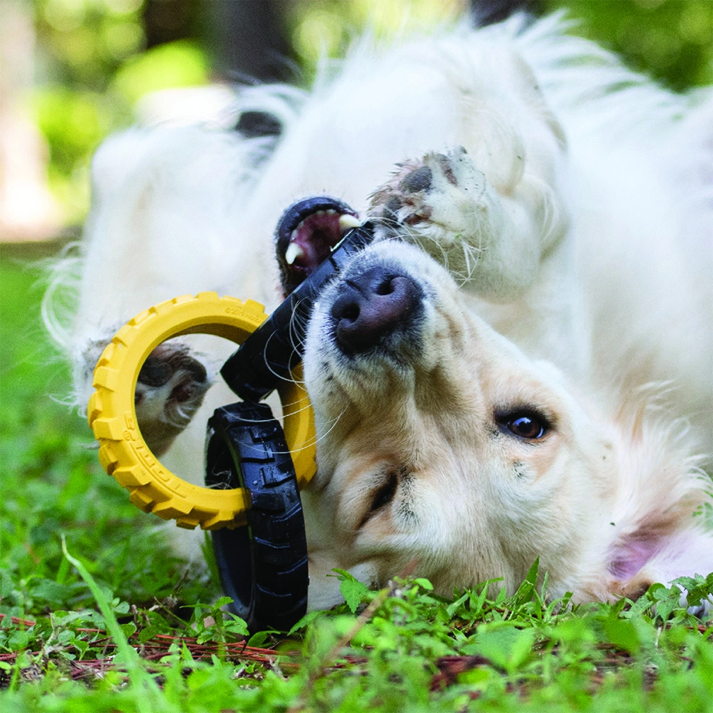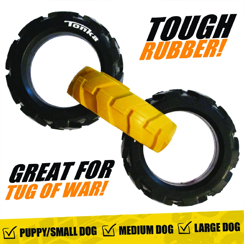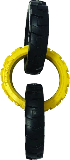 Hračku Tonka tvoria tri robustné krúžky s pružným, pneumatikám podobným vzorom, ktoré skvele padnú do papule aj do ruky. Vďaka kombinácii odolnej gumy a šikovného tvaru si poradí s intenzívnym ťahaním a zároveň je bezpečná na každodennú zábavu.