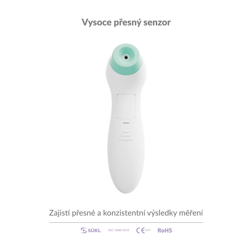Okrem telesnej teploty zmeriate aj povrchy, predmety a tekutiny – ideálne na kontrolu dojčenskej stravy, kúpeľa alebo nápojov. Ovládanie jedným tlačidlom a kompaktné prevedenie z neho robia perfektného pomocníka doma aj na cesty.