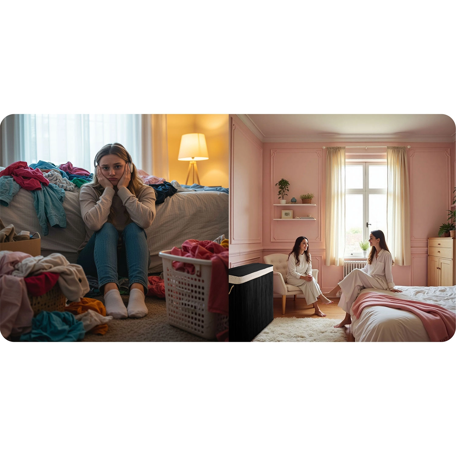 Vneste poriadok do prania s elegantným košom z bambusu s objemom 150 l a inteligentným 3-komorovým triedením na svetlé, tmavé a farebné. Vďaka prírodnému bambusu je kôš odolný voči vlhkosti, pevný a štýlový, zatiaľ čo vyberateľné bavlnené vrecko umožní jednoduchý prenos prádla priamo do práčky bez neporiadku.