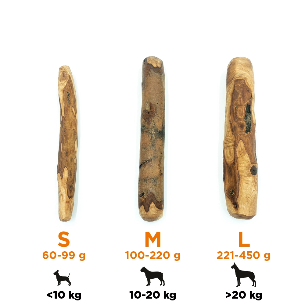 Táto prírodná tyčinka z olivového dreva je ideálna pre malé plemená a psov s intenzívnou potrebou žuvať. Ručne vybraný materiál z talianskych olivovníkov je starostlivo vysušený a ošetrený olivovým olejom, ktorý dodáva príjemné aróma a zvyšuje atraktivitu pre psov.