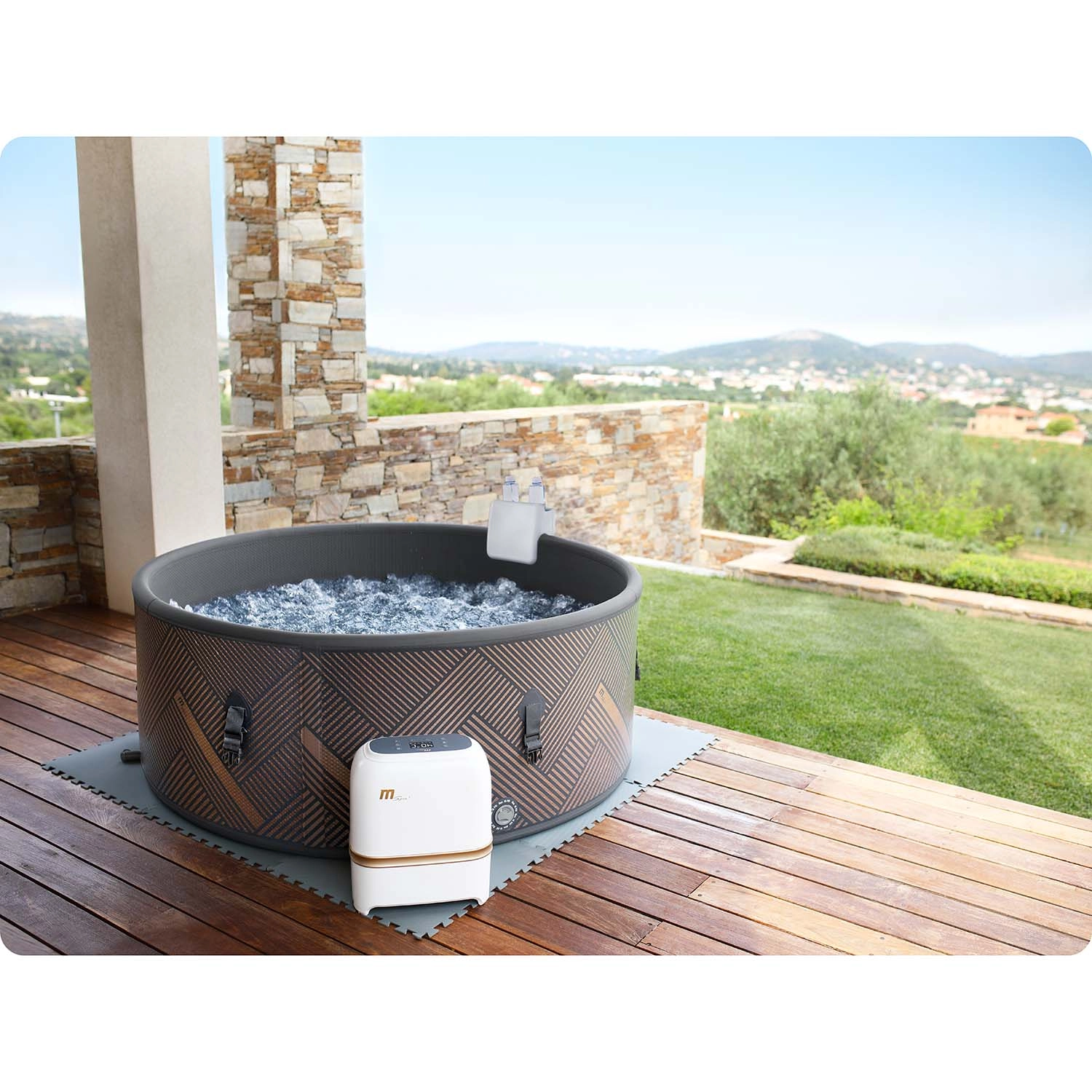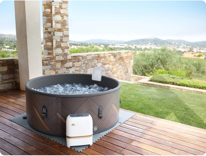 Inštalácia je rýchla a bez náradia – prvok jednoducho pripevníte na hornú časť bočnej steny vírivky a umiestnite presne tam, kde vám to vyhovuje. Presne tvarované držiaky spoľahlivo udržia plechovky, poháre aj fľaše, zatiaľ čo opierka hlavy podporí krčnú chrbticu a zlepší pohodlie pri relaxácii.