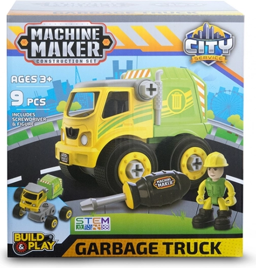 Séria CITY SERVICE od Machine Maker prináša realistické pracovné vozidlá, ktoré si deti samy zostavia a znovu rozložia pomocou bezpečného skrutkovača. Diely možno medzi modelmi kombinovať a vytvárať tak originálne stroje aj nové herné scenáre.