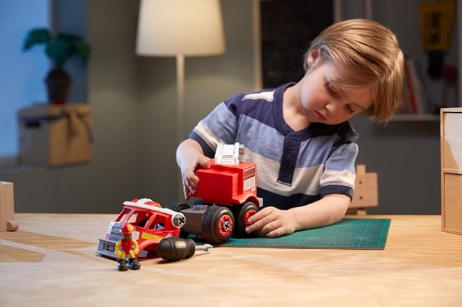 Červené hasičské vozidlo zo série CITY SERVICE prináša realistickú zábavu. S figúrkou hasiča a skrutkovačom deti ľahko zostavia model a vyrazia k zásahu.