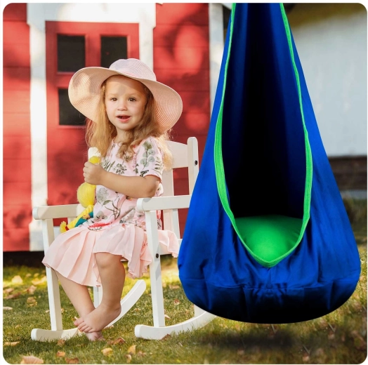 Pohodlný detský závesný kokon NEO‑SPORT v modrej farbe je skvelé miesto na relax aj jemné hojdanie doma aj na záhrade. Ponúka mäkké sedadlo s vankúšom, pevné švy a odolný materiál s nosnosťou až 80 kg. Látkový poťah možno prať v práčke a po zložení zaberie minimum miesta.