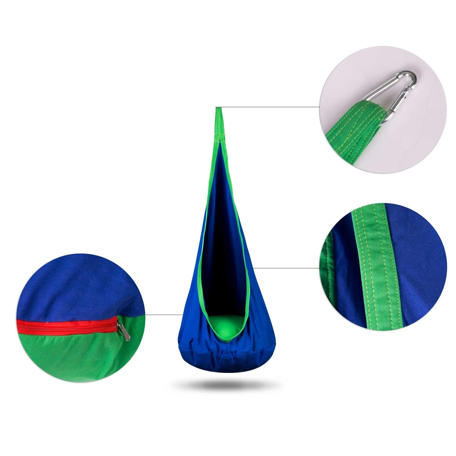Praktický poťah so zipsom umožňuje ľahké vybratie a pranie v práčke. Kokon je vyrobený z odolnej textílie, ktorá dobre znáša každodenné používanie. Súčasťou balenia je aj závesný hák/karabína, takže inštalácia je rýchla a bez starostí.