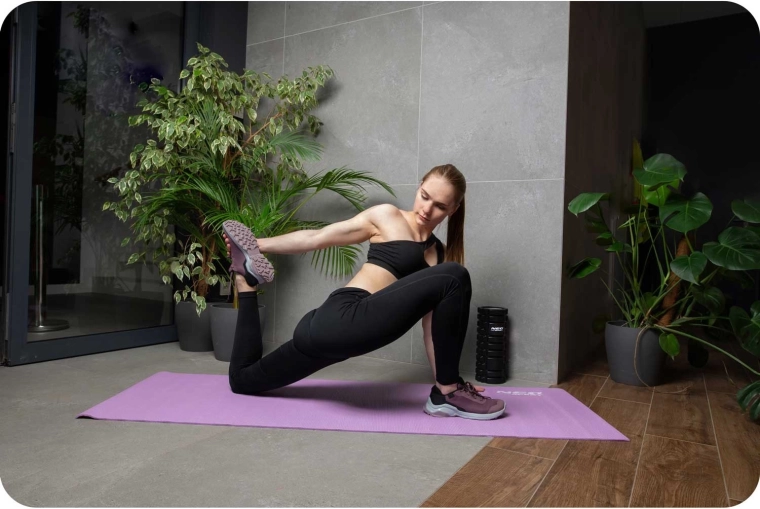 Textúrovaný povrch zvyšuje priľnavosť rúk aj nôh a bráni posunu podložky na podlahe. Stabilita pri pozíciách aj počas dynamických sekvencií.
