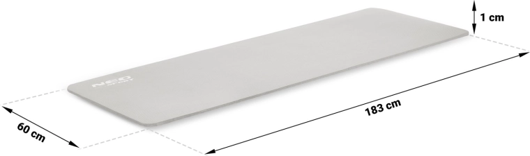 Rozmery 183 × 60 × 1 cm poskytujú dostatok priestoru na pohodlné vykonávanie cvikov na zemi. Vďaka nízkej hmotnosti a popruhu na prenášanie (súčasť vybraných variantov) je podložka praktická na doma, do posilňovne aj von.