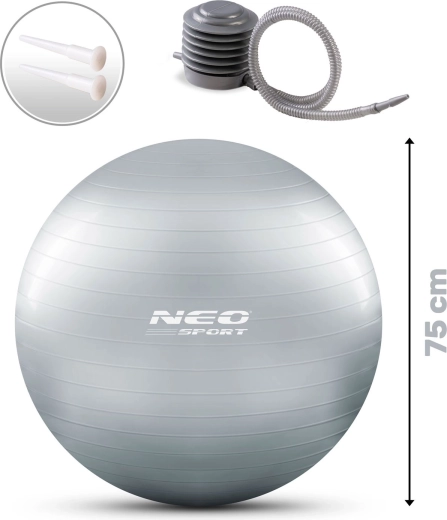 Súčasťou balenia je univerzálna ručná pumpa s dvomi nadstavcami a zátkami – loptu ľahko nafúknete a môžete hneď cvičiť.