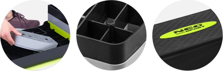 Trénujte efektívne a bezpečne s robustným aerobic stepom NEO SPORT. Vďaka nastaviteľným nadstavcom ľahko zmeníte intenzitu cvičenia, zatiaľ čo protišmyková textúra a stabilná základňa zaistia istý krok pri každom pohybe. Materiál je odolný, vodoodolný a ľahko umývateľný, takže sa step hodí na každodenné domáce použitie.