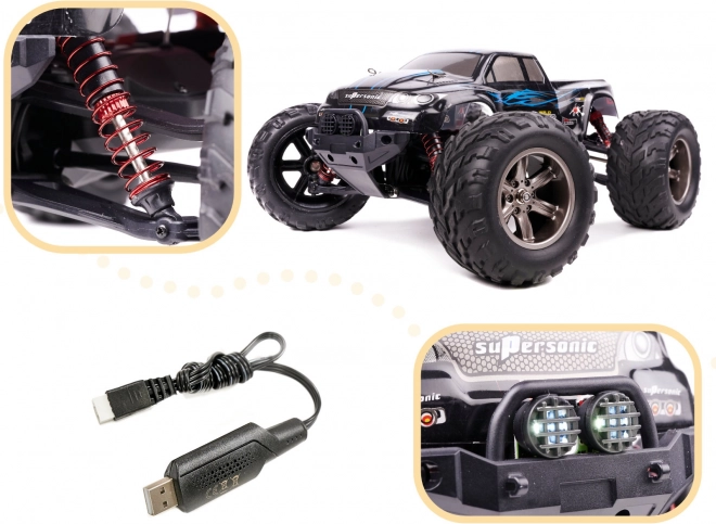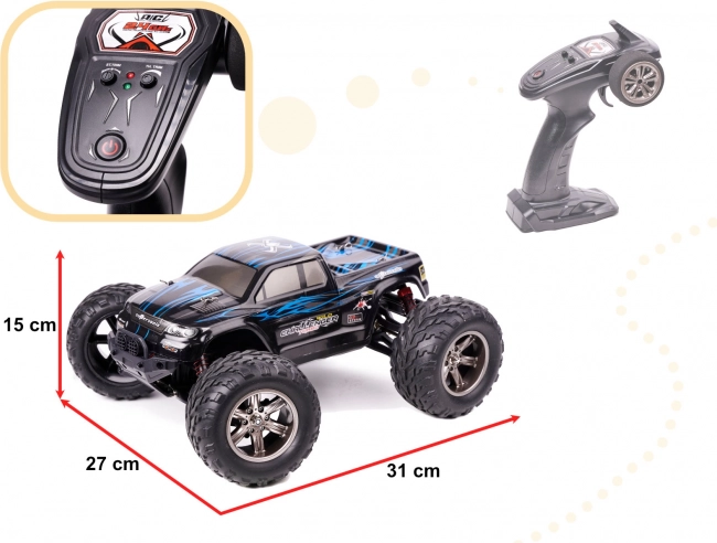 Veľký a rýchly Monster Truck je skutočným dobyvateľom terénu. Skvele sa pohybuje po asfalte, piesku, kamienkoch či tráve, a dosahuje rýchlosť až 36 km/h.