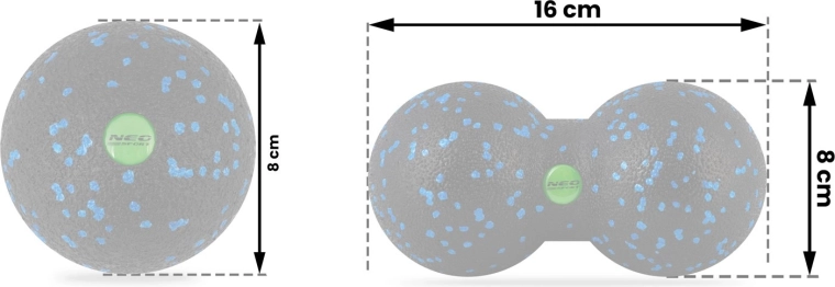 Využijete ich na tréning, rozcvičenie, strečing, rehabilitáciu aj relax. Materiál je odolný voči splošteniu, vodoodolný a hygienický – ľahko ho umyjete. Kompaktné rozmery zaisťujú jednoduché prenášanie a skladovanie, takže sa masáži nebudete vyhýbať ani na cestách.
