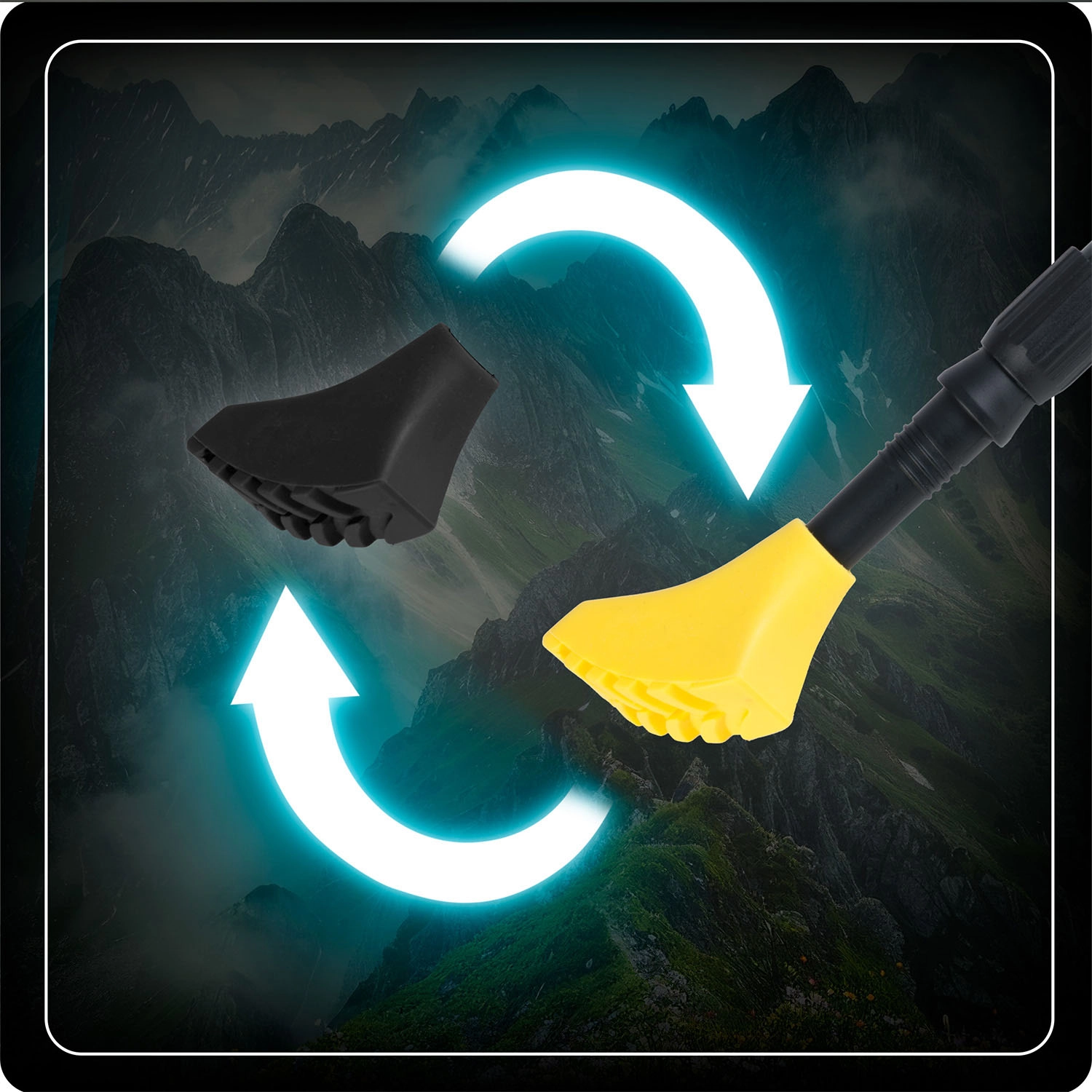 Ľahká, a pritom mimoriadne odolná konštrukcia z AL 7075 odoláva náročným podmienkam aj vlhkosti. Jedna palica váži len 0,355 kg, takže sa skvele nosí aj pripnutá zvonka na batohu. Vďaka kompletnému setu vymeniteľných koncoviek budete mať perfektnú priľnavosť na asfalte, v lese, piesku aj blate. Súčasťou je puzdro s uchom pre jednoduchý transport.
