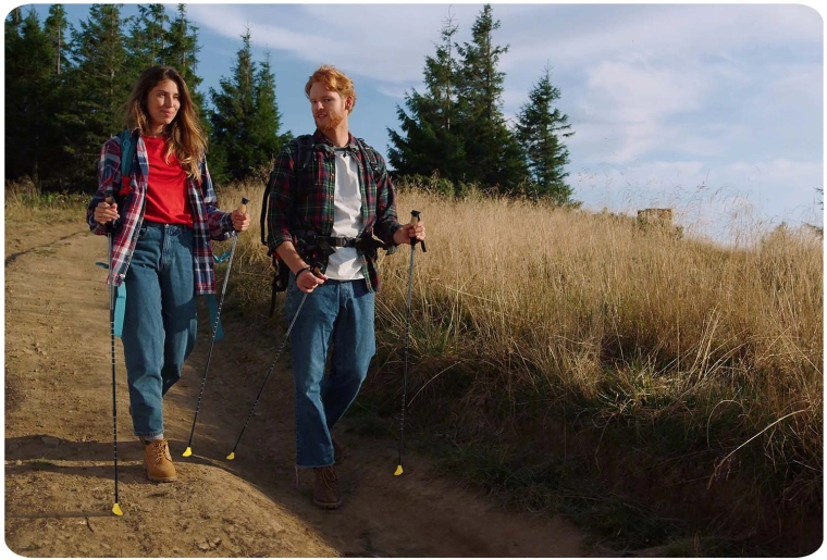 Hlboký vzor a protišmyková základňa zabezpečujú výbornú trakciu na asfalte, v lese, na piesku aj na snehu, takže si nordic walking užijete po celý rok.