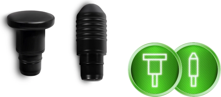 - Kompatibilita s olejom: všetky hlavice okrem guľovej je možné používať s masážnym olejom (dbajte, aby sa olej nedostal dnu do zariadenia ani na upevňovaciu časť).