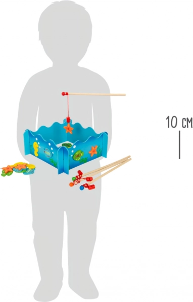 Objavte čaro morského sveta s magnetickou rybárskou hrou small foot v 3D prevedení. Deti pomocou drevených prútov s magnetom chytajú pestré rybky a morské koníky, trénujú pevný úchop, sústredenie a koordináciu pohybov. Ideálne na hranie s kamarátmi aj rodičmi.
