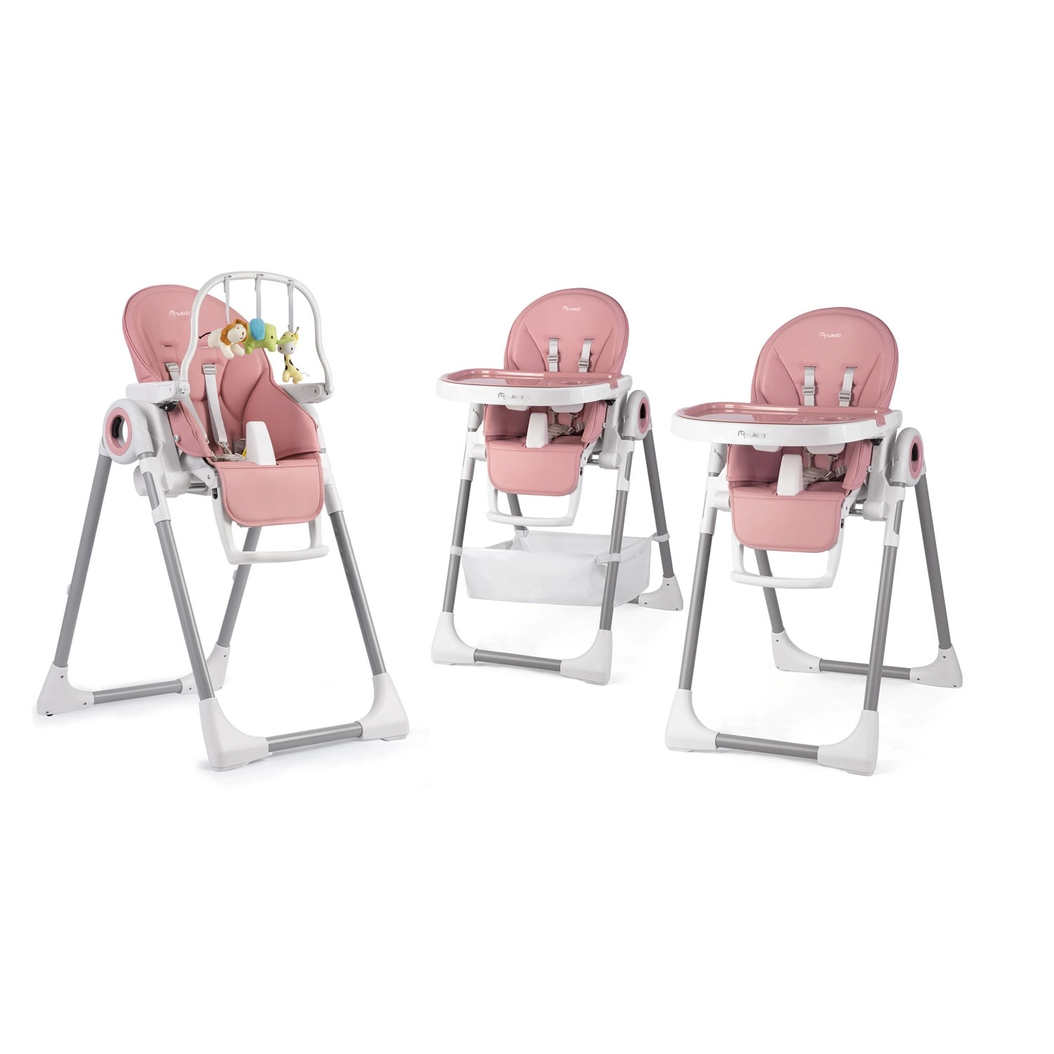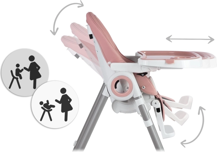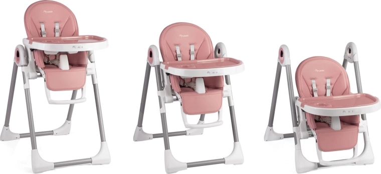 Praktická a štýlová detská jedálenská stolička NUKIDO Belo ružová ponúka 3v1 využitie – jedálenská stolička s vyberateľným tácňom, pohodlné ležadlo a bezpečné miesto na hranie. Vďaka plynulej regulácii výšky, až 5 polohám sklonu operadla, nastaviteľnej opierke nôh a 5-bodovým pásom sa ľahko prispôsobí rastu dieťaťa od 6 do 36 mesiacov. Odolné materiály sa ľahko čistia, zadné kolieska uľahčia presun a kompaktné skladanie jedným pohybom šetrí miesto. Certifikácia EN 14988 zaručuje bezpečné používanie.