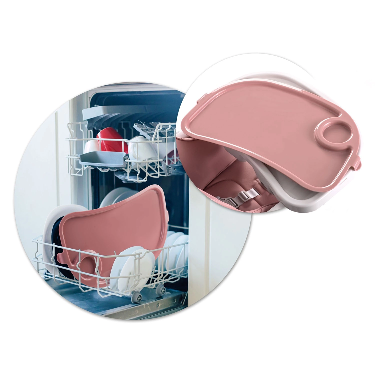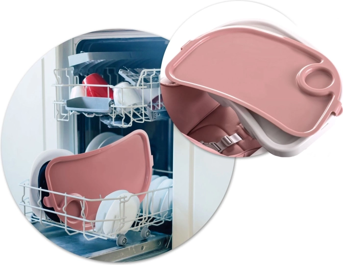 Tácka so zvýšenými okrajmi je odnímateľná a jej hornú vložku možno umyť pod vodou alebo v umývačke – upratovanie po jedle je otázkou okamihu.