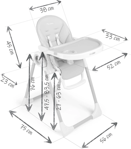 Moderná detská jedálenská stolička Nukido Belo pre deti od 6 do 36 mesiacov spája pohodlie a bezpečie v jednom. Ponúka plynulé nastavenie výšky, 5-stupňové polohovanie operadla, nastaviteľnú opierku nôh a odnímateľný pult s vložkou pre jednoduché čistenie. Vďaka 5bodovým pásom, stabilnej kovovej konštrukcii a certifikácii EN 14988 je Belo spoľahlivou voľbou na každodenné kŕmenie aj oddych.