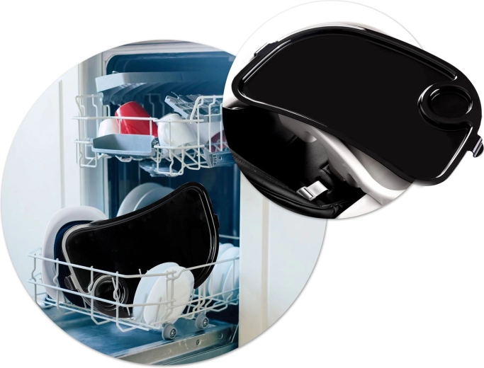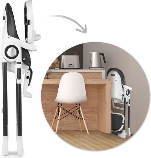 Odnímateľný pult so zvýšeným okrajom a držiakom na nápoj uľahčuje kŕmenie aj upratovanie. Vložku možno sňať a opláchnuť pod tečúcou vodou – rýchlo a bez starostí.