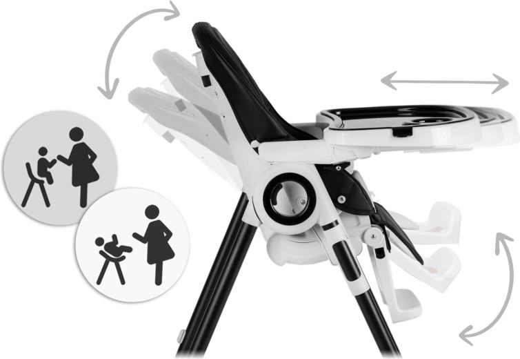 8-stupňové nastavenie výšky, 5 polôh operadla chrbta a nastaviteľná opierka nôh zaistia pohodlie pri jedle aj oddychu od prvých mesiacov až do 3 rokov.