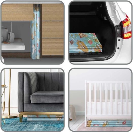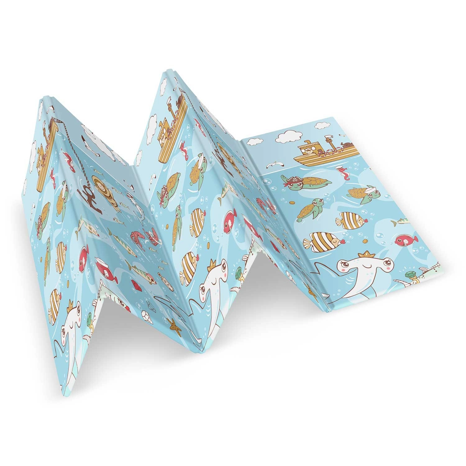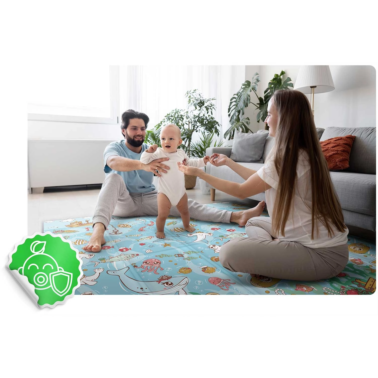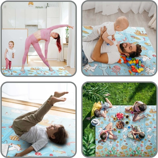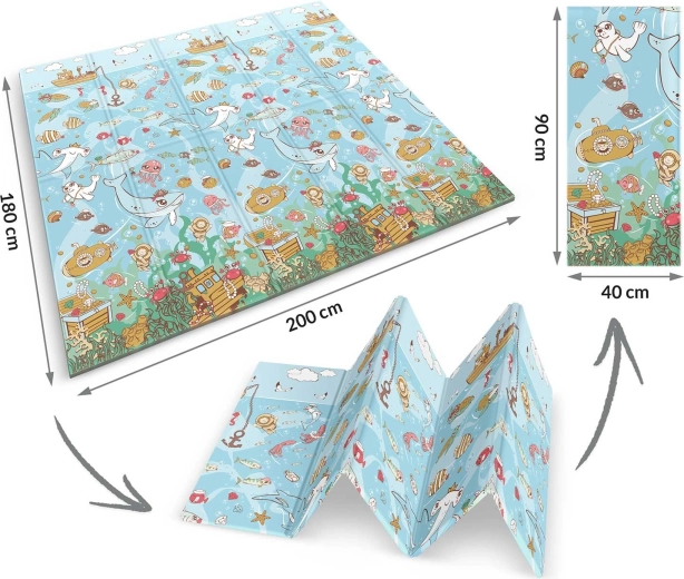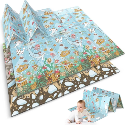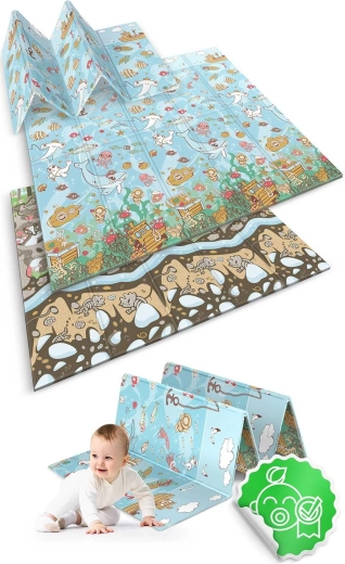 Veľká skladacia penová podložka NUKIDO s rozmermi 200 × 180 × 1 cm ponúkne deťom pri hre aj pri prvých krôčikoch maximálne pohodlie a bezpečie. Je obojstranná (motív oceánu a lesa), vodoodolná, ľahko sa čistí a vďaka 1 cm hrúbke z XPE peny skvelo tlmí nárazy. Má protišmykový povrch, neobsahuje BPA, PVC, ftaláty ani formamid a spĺňa európske bezpečnostné normy vrátane EN71 a označenia CE.