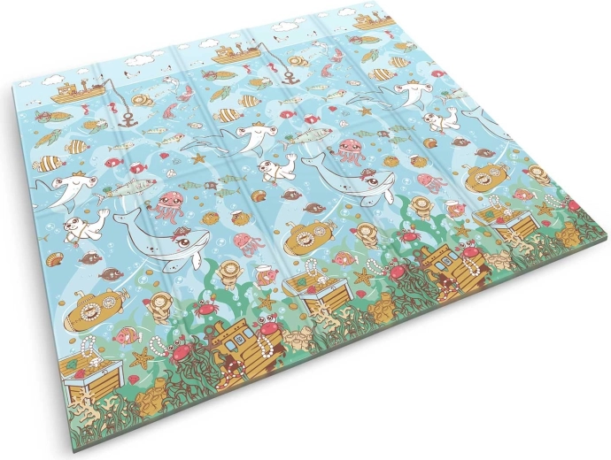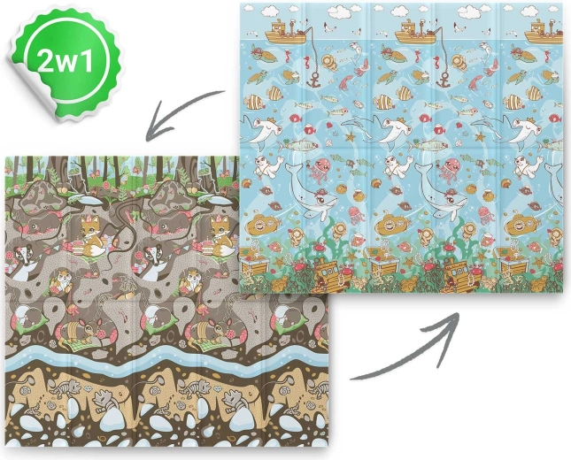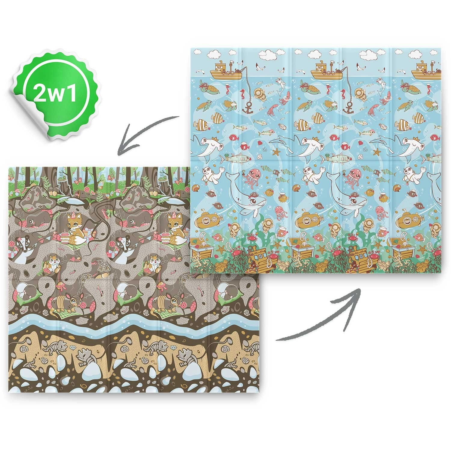 Skladacia hracia podložka NUKIDO prináša deťom mäkký, teplý a bezpečný priestor na hranie, lozenie aj cvičenie. Vďaka obojstrannému dizajnu s motívom oceánu a lesného bludiska podnecuje fantáziu a prirodzene podporuje rozvoj jemnej aj hrubej motoriky. Kvalitná XPE pena je bez zápachu, hypoalergénna a s hrúbkou 1 cm výborne amortizuje pády na tvrdej podlahe.