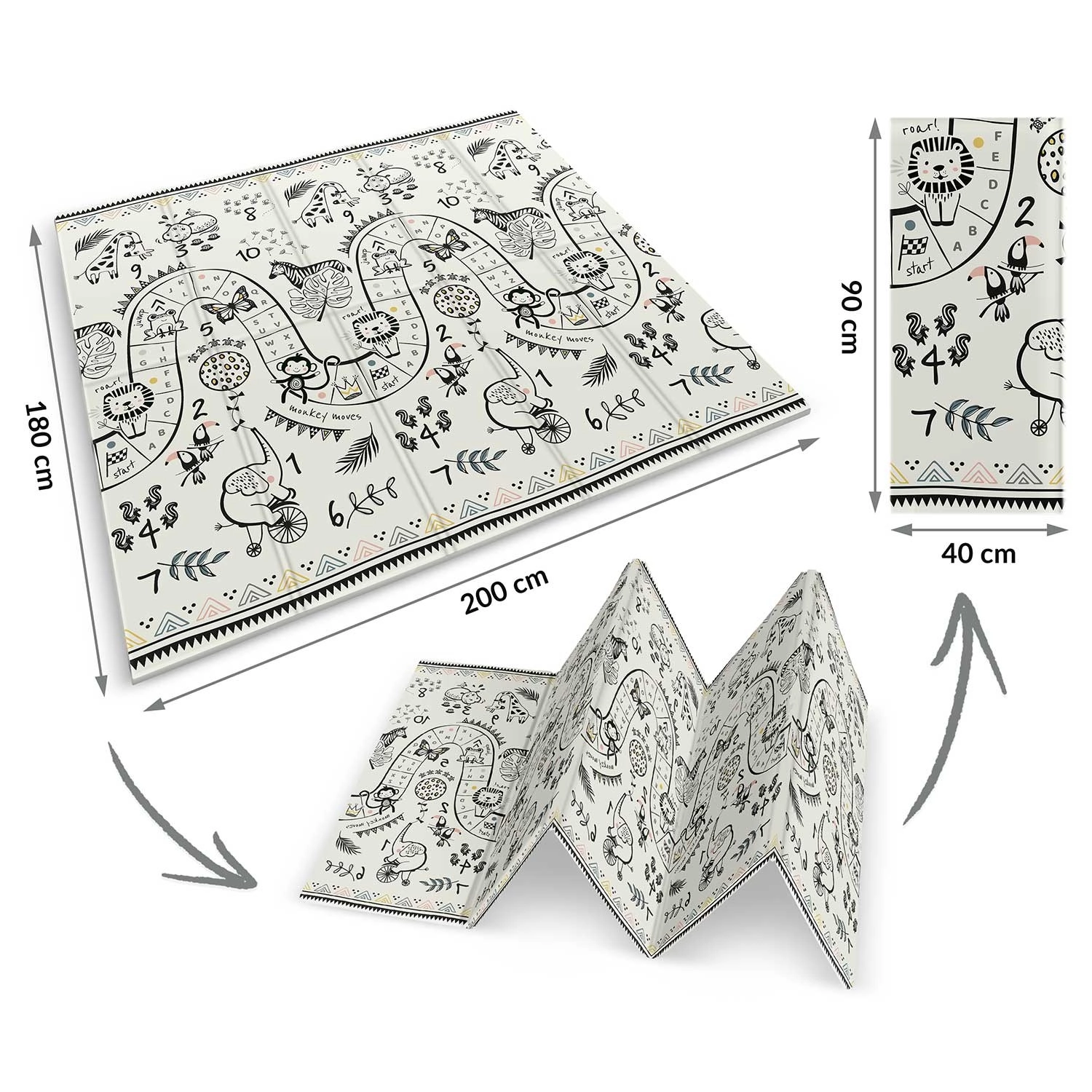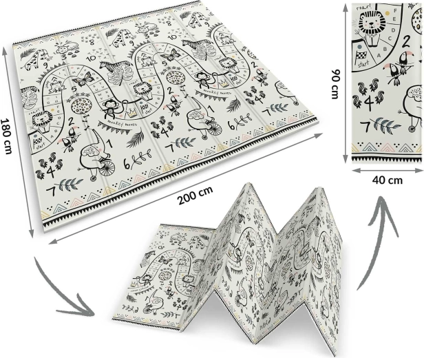Podložka sa skladá akordeónovo, takže ju ľahko prenesiete, uložíte pod posteľ či do auta a vezmete na návštevu, do herne alebo na piknik. Kvalitné horúce lisovanie zvyšuje životnosť, okraje sa netrhajú a materiál je bez zápachu a alergénov.