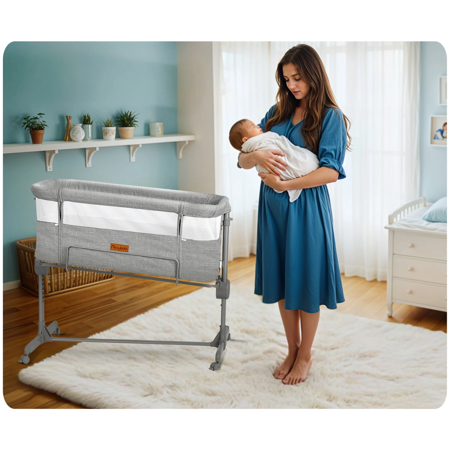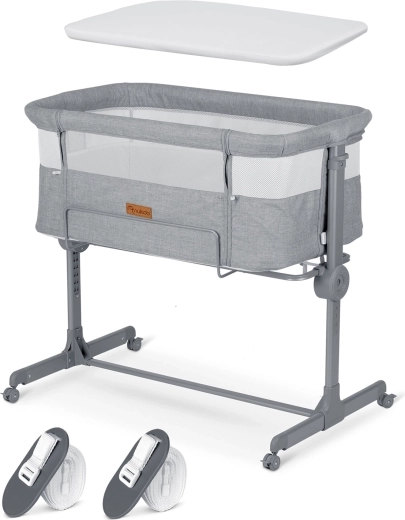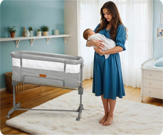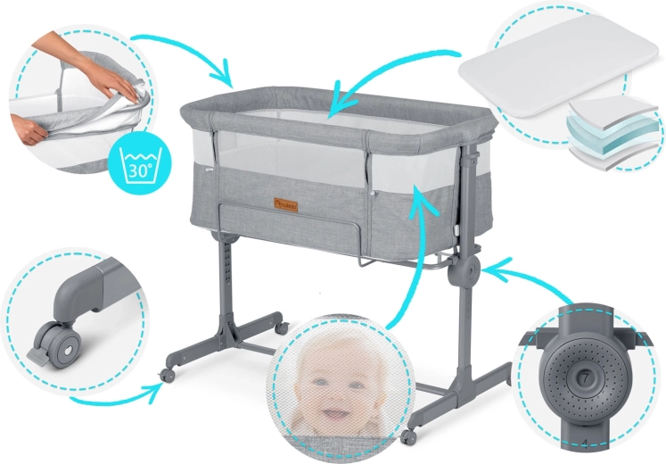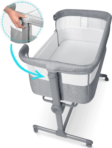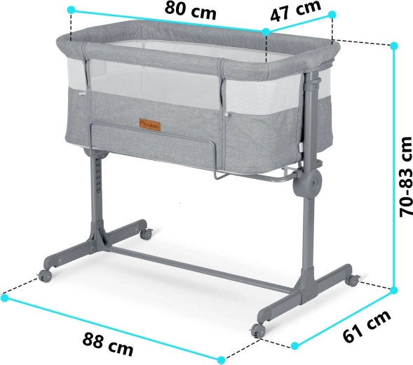 Postieľku ľahko presuniete po byte a bezpečne zafixujete. Stabilný rám a kvalitná aretácia zaručujú bezpečné používanie pri lôžku.