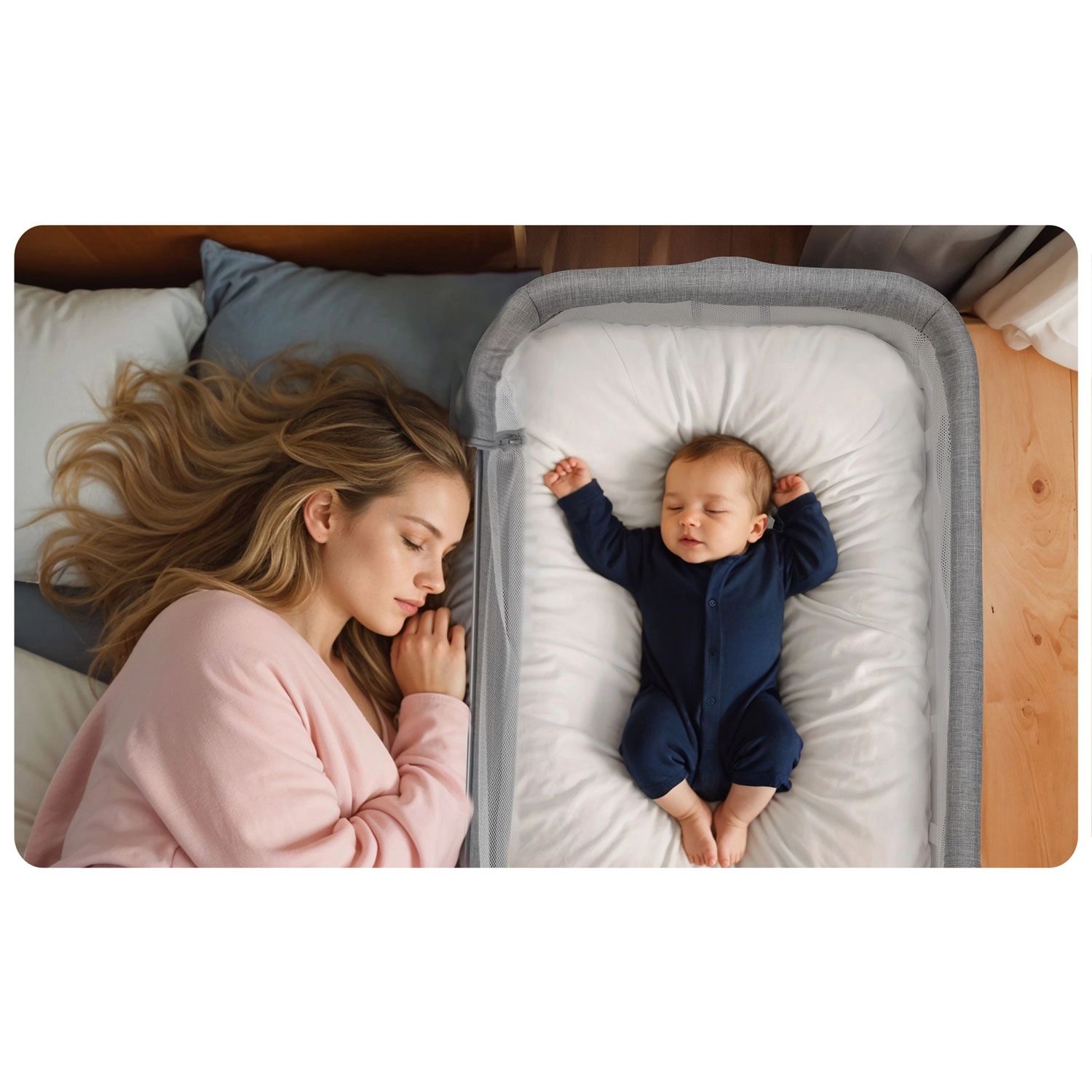 Užite si pokojnejšie noci s prístavnou postieľkou NUKIDO, ktorá spája komfort, bezpečie a funkčnosť. Bábätko spí vo svojej vlastnej zóne, ale zostáva na dosah, čo uľahčuje nočné kŕmenie a rýchlu reakciu na jeho potreby. Priedušné sieťované steny zabezpečujú skvelú cirkuláciu vzduchu a lepšiu viditeľnosť.