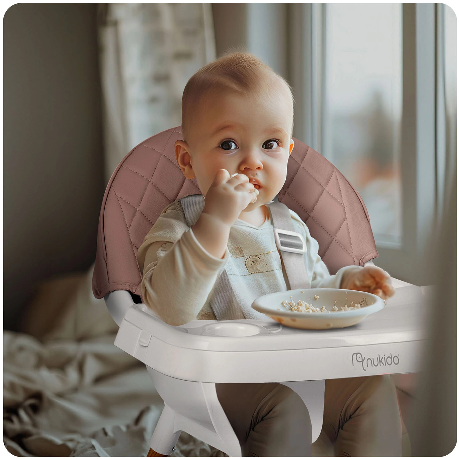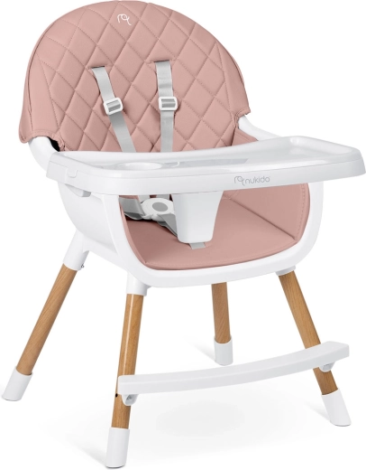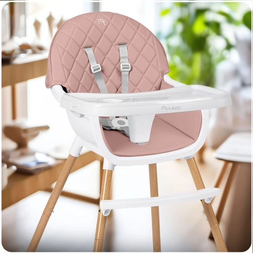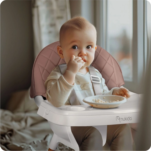NUKIDO Lilo je praktická detská jedálenská stolička, ktorá rastie s vaším dieťaťom. Vďaka dvom úrovniam nastavenia podnosu ľahko prispôsobíte priestor pred dieťaťom, podnos možno navyše úplne zložiť pre samostatné sedenie pri stole. Mäkké, polstrované sedadlo z materiálu, ktorý neabsorbuje nečistoty, stačí po jedle jednoducho utrieť.