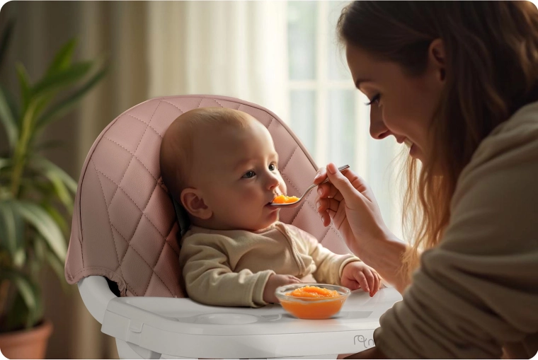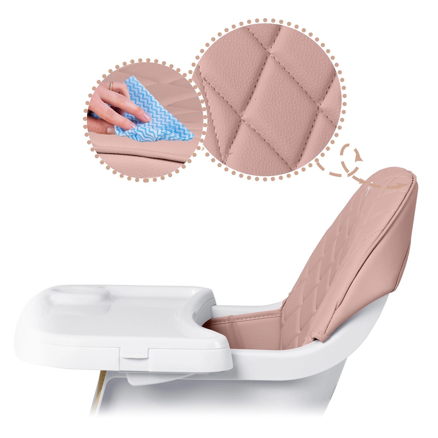 Spoľahlivé 5-bodové pásy, stabilné nohy s protišmykovými koncovkami a pevná konštrukcia zabezpečujú bezpečné sedenie pri jedle aj pri hre.