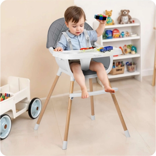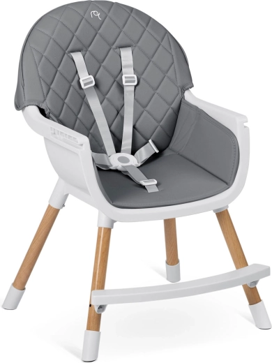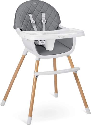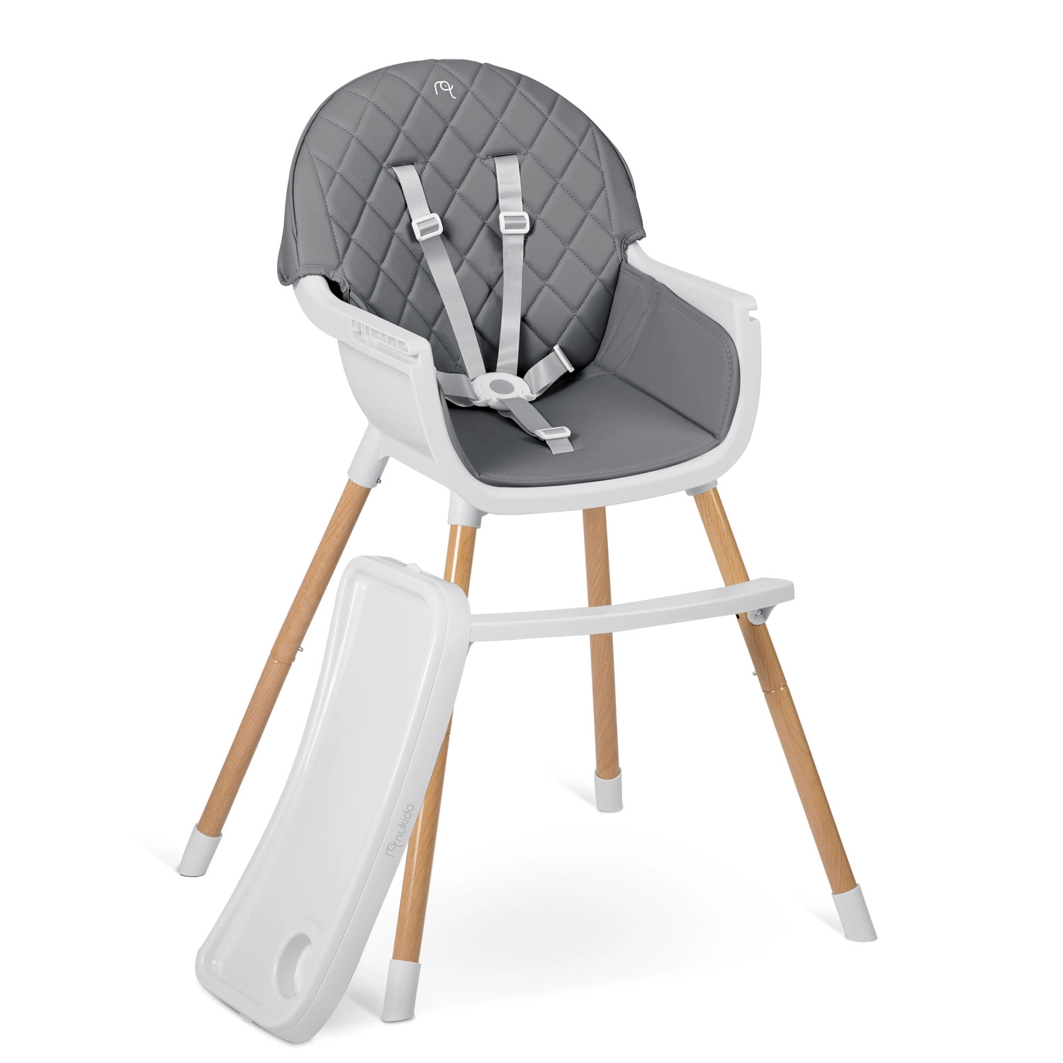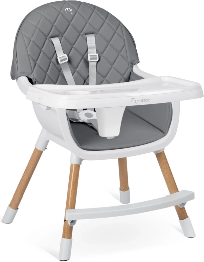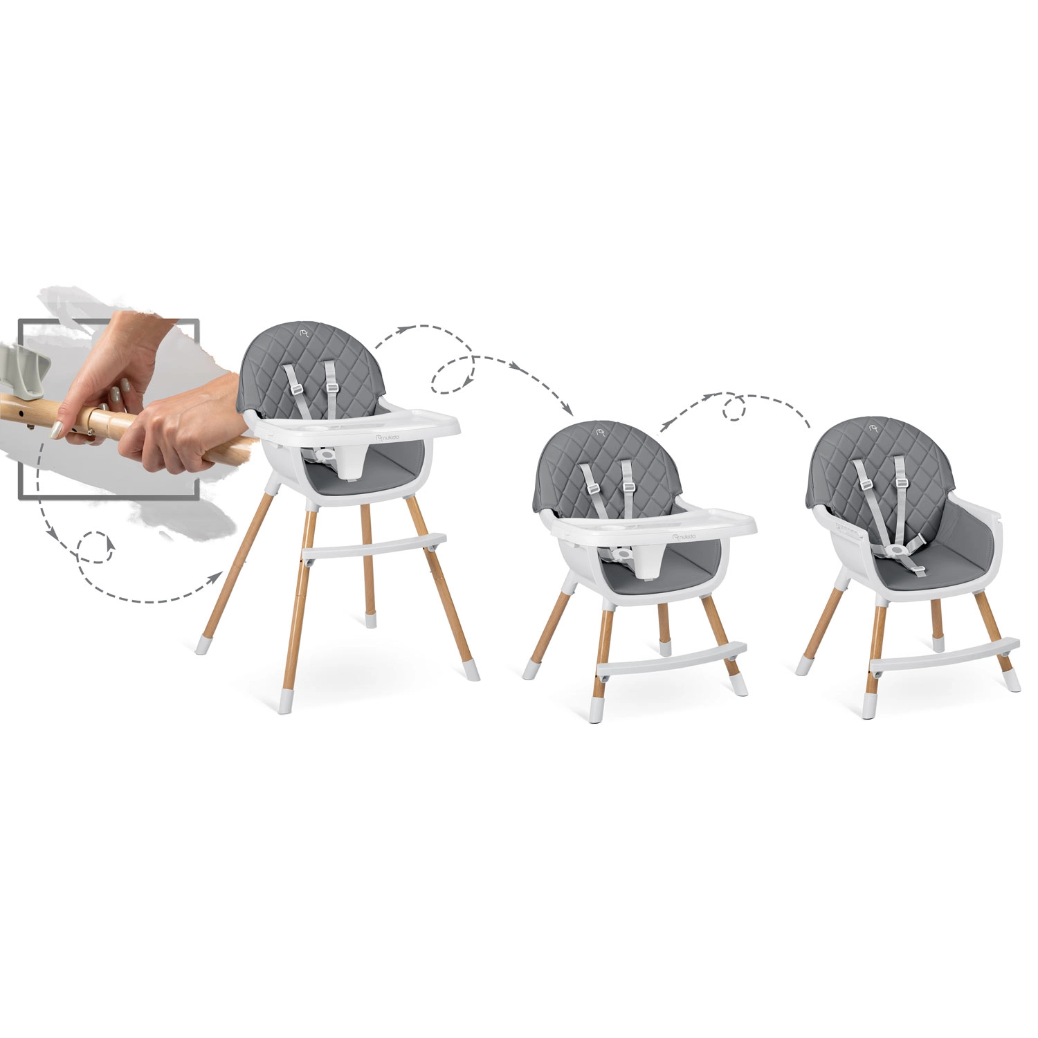 Nastaviteľná a odnímateľná tácka, pevná podnožka a stabilná konštrukcia umožňujú využitie ako vysoká stolička aj nižšie kresielko. Ideálna na kŕmenie, kreslenie, stavanie kociek aj čítanie.