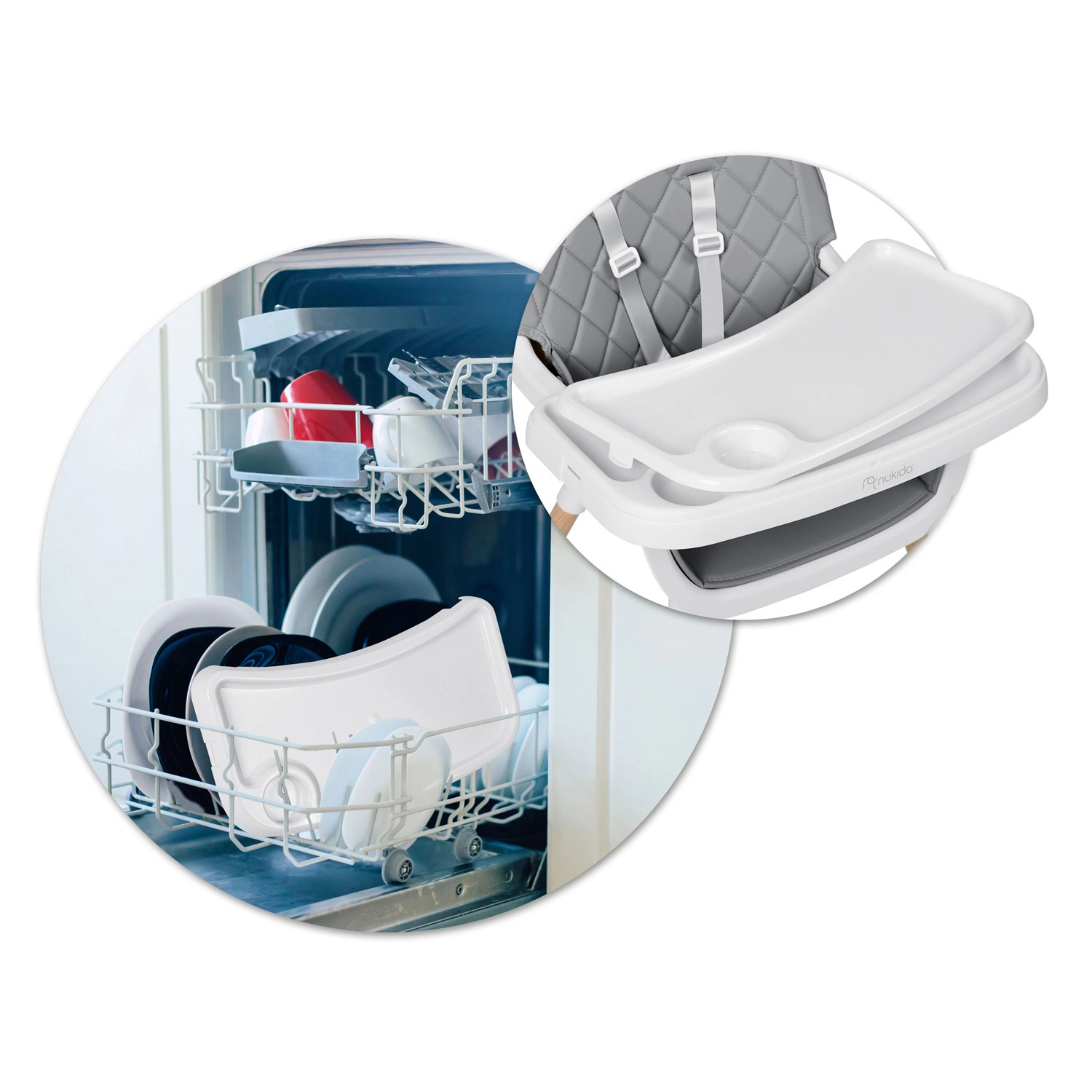 Praktická jedálenská stolička NUKIDO Lilo 3v1 v elegantnej sivej farbe kombinuje pohodlie, bezpečie a jednoduchú údržbu. Ponúka nastaviteľný a odnímateľný tácku so zvýšenými okrajmi, ľahko umývateľné materiály a stabilné nohy s protišmykovou úpravou. Vďaka 5-bodovému bezpečnostnému pásu a splneniu normy EN 14988 je skvelou voľbou na kŕmenie, hranie aj učenie detí od 6 mesiacov do 15 kg.