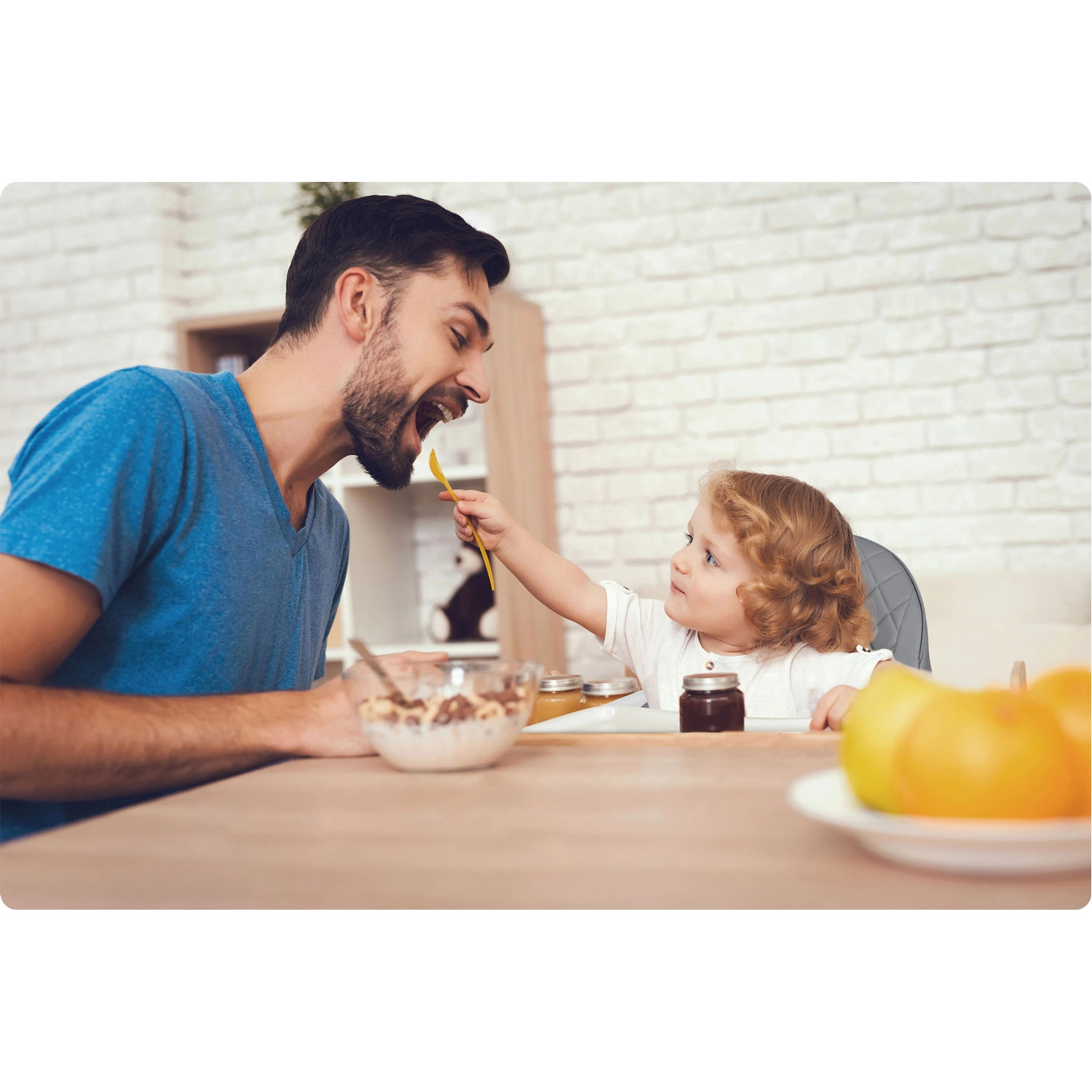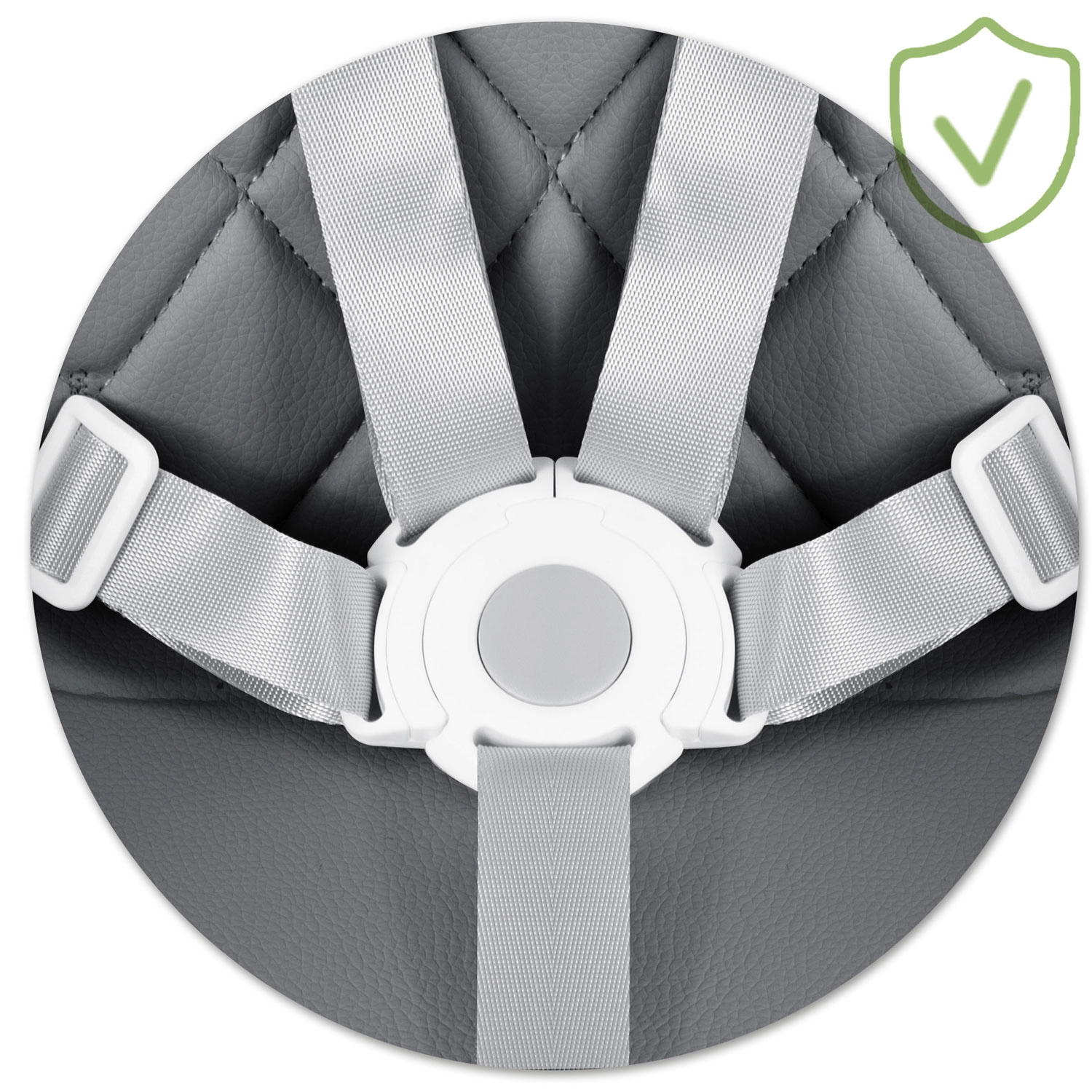 Integrované 5-bodové pásy pevne a pohodlne zaistia dieťa v stoličke a zabránia samovoľnému vysunutiu. Stolička spĺňa prísnu európsku normu EN 14988 pre maximálny pokoj pri každom jedle aj hre.